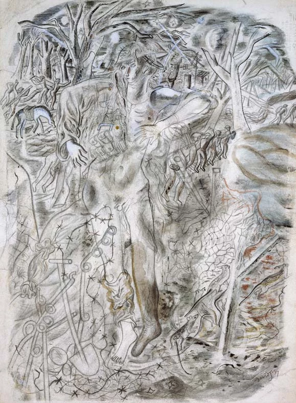 Frontispiece to 'In Parenthesis', 1937, the Christ-like figure of the common man, caught in the predicament of war.
