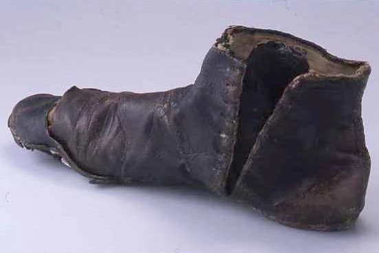 A leather shoe found behind a fireplace at Ty Cerrig, Llanfachreth, in March 1994