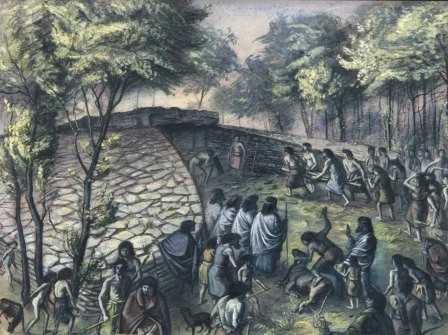 Imaginative reconstruction of a burial ceremony at Tinkinswood, by Alan Sorrell.