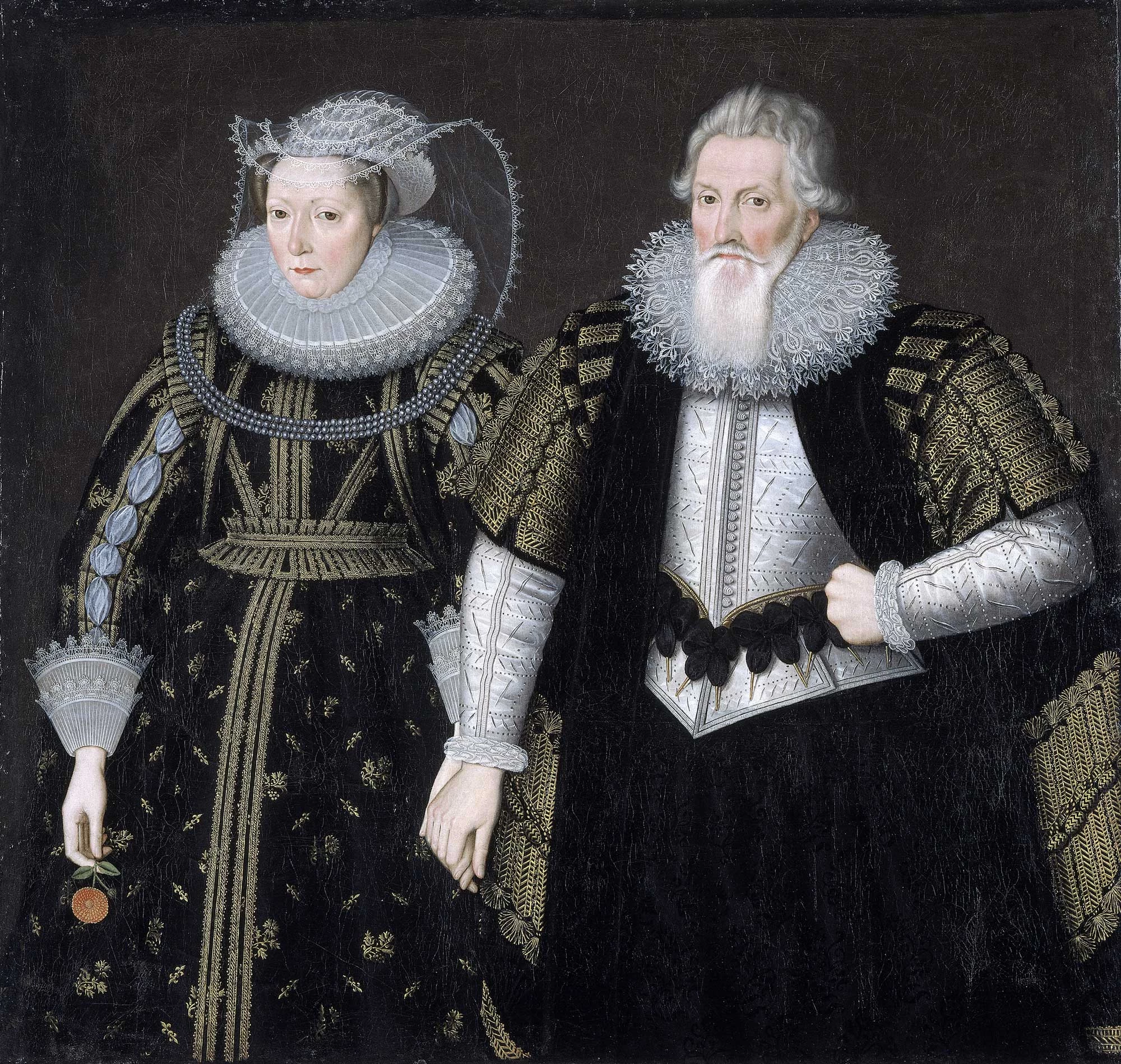 During the first two decades of the 17th century, this generation of the family commissioned several portraits in the formal heraldic style, such as this. The purpose of this type of portrait was not to show the personality of the sitter but to publicly display the social status and wealth of the family.