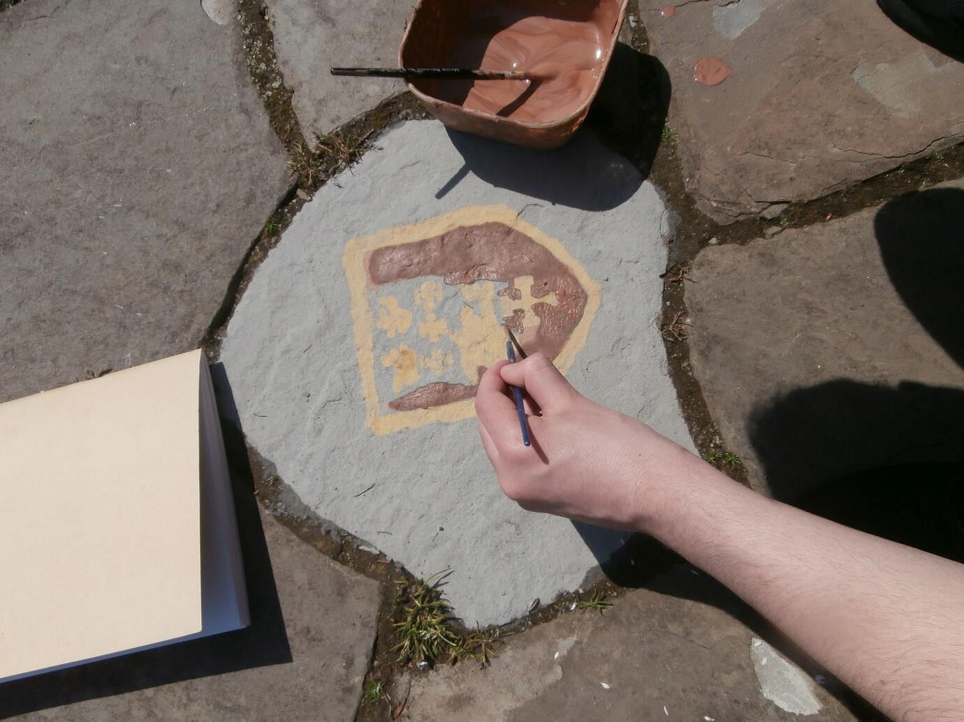 Imogen began her workshops by looking at patterns in the collections and on site, investigating patchwork quilts, medieval tiles and the paving patterns in the Italian garden and also researched play grounds and creative play around Cardiff.