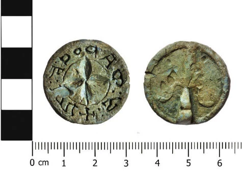The most common motif on Welsh seals recorded with PAS is a variation on a many-pointed star, sometimes also described as a flower. Typical examples of this form are the thirteenth- or fourteenth-century lead seal of IEWANI APIERWE (probably Ieuan ap Iorwerth), found at Marshfield, Newport, in 2017, and the contemporary seal of WILLIEI FIL ROBERTII (William son of Robert), found at Merthyr Dyfan, near Barry, in 2013.