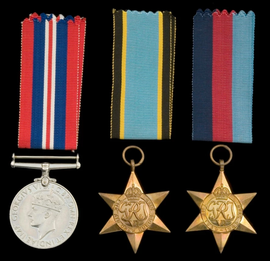 Sgt Evans’ medals (from left to right): The War Medal, The Air Crew Europe Star, The 1939-1945 Star.