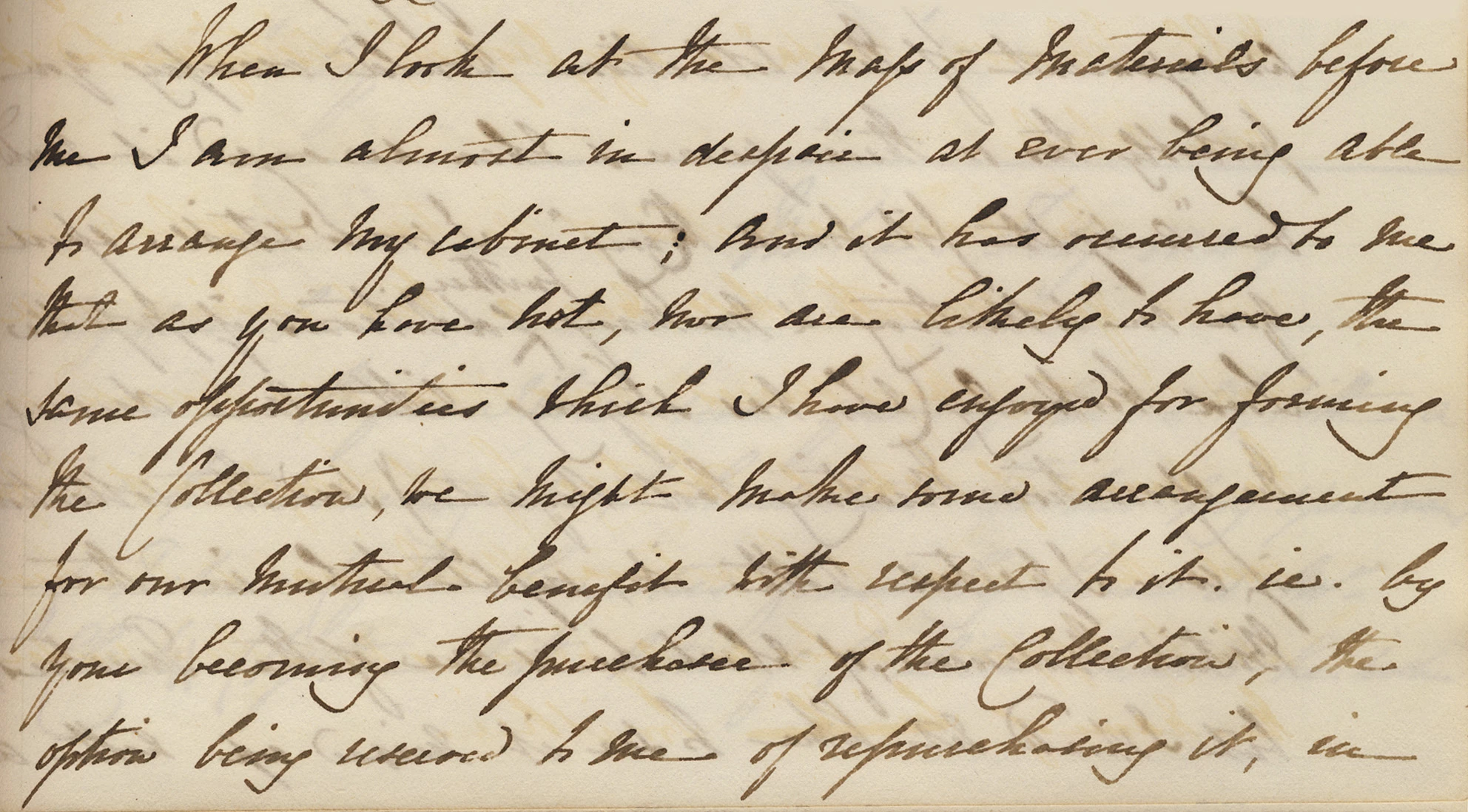 “I know the collection to be unrivalled and as perfect as probably any … can be; and I have not spared pains or money to complete it … The arrangement of the collection would occupy you probably two or three years and when arranged it would be ‘a sight fit for a King’”