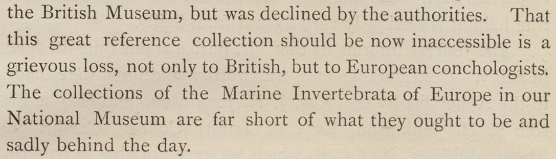 In his later years, Jeffreys offered his collection to the Natural History Museum, London, but the offer was not accepted – due to a lack of space, not because they didn’t want it.