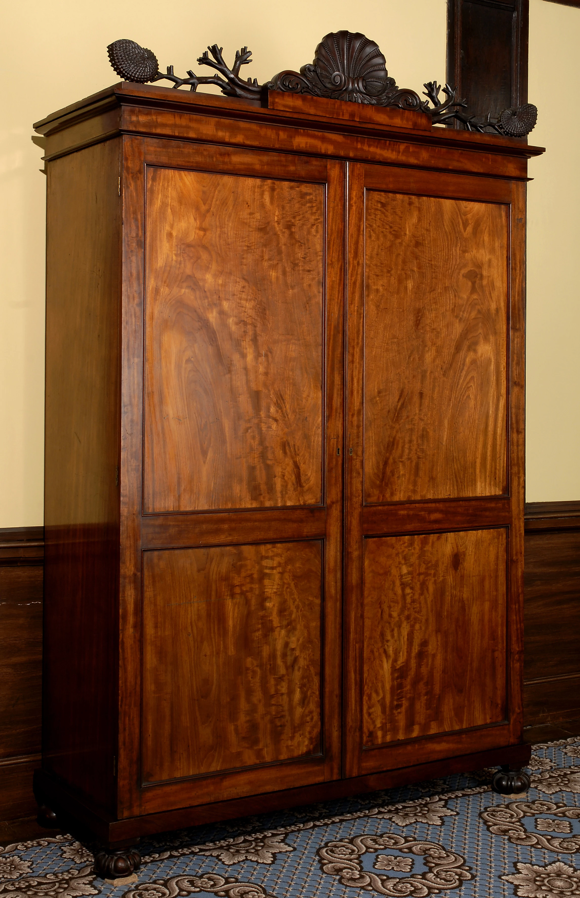 The provenance of the cabinet is unclear. It was sold at Sotheby’s in 2001 and Christie’s in 2004, as a Victorian Gillows piece. This would place its production in London. However, our Amgueddfa Cymru furniture conservator has identified it as a possible William the Fourth or early Victorian cabinet, dating from the second quarter of the 19th century, and suggests it may be an important piece of Welsh furniture.