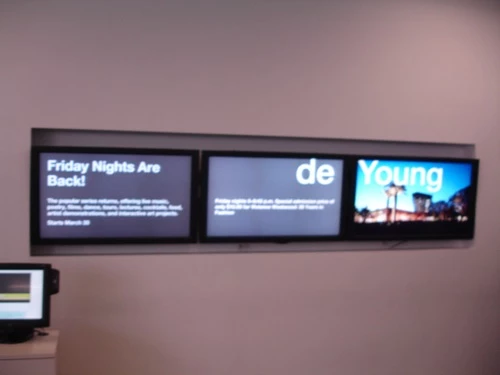 At the de Young Museum we had a chance to try out their PDA based tour developed by Antenna Audio. The interface was robust and easy to use. They also showed their digital signage system - which was a Flash display accessing the Museum's web-based CMS (Content Management System).