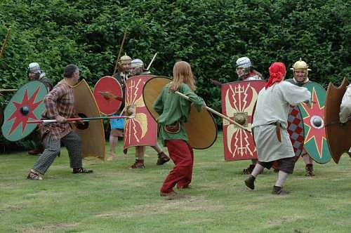 Today they set up camp at Caerwent Roman town, demonstrating activities from Roman medicine to tablet weaving and basketry. Then, of course, there were the battles, as Britons met Romans in a fight to the not-so-bitter end.