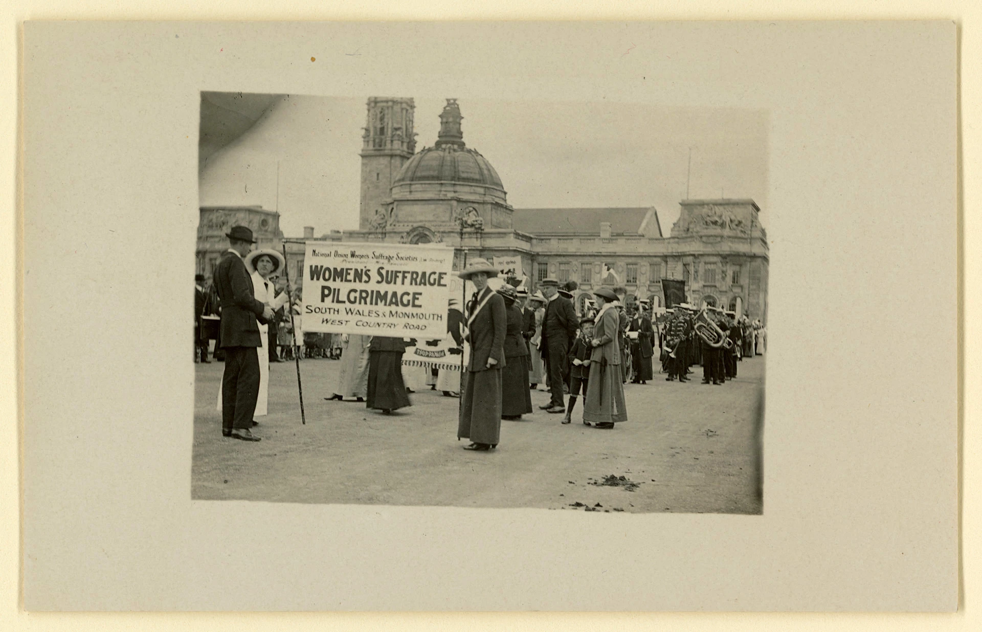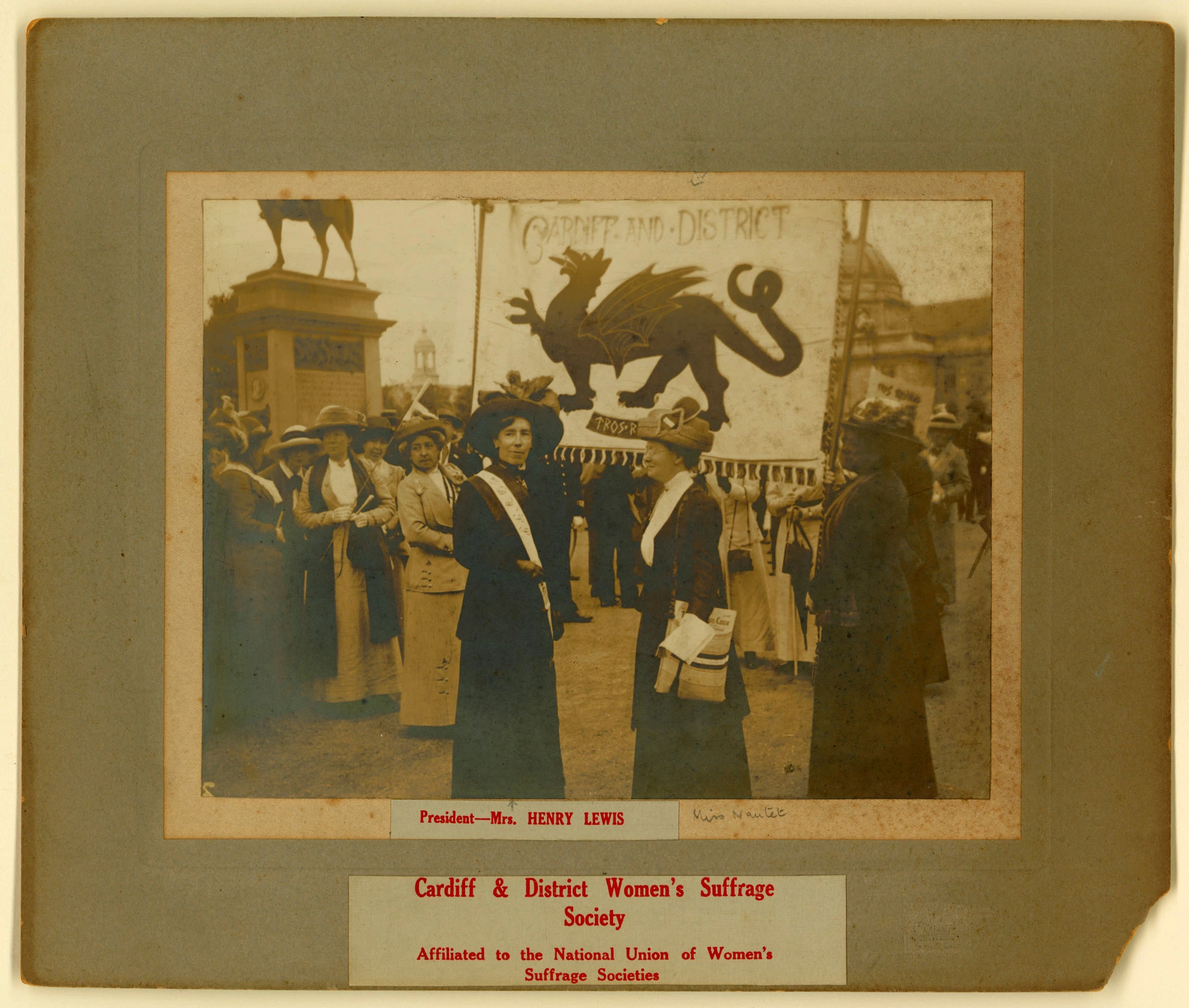Er mai hynt a helynt y swffragetiaid oedd yn hawlio sylw’r wasg, roedd mwy o lawer o ‘suffragists’ yn bodoli yng Nghymru. Roedd y ‘suffragists’ yn credu mewn gweithredu heddychlon a newid y drefn drwy ddulliau cyfansoddiadol. Yn eu plith, roedd aelodau’r Cardiff & District Women’s Suffrage Society. Hon oedd y gangen fwyaf o’r National Union of Women's Suffrage Societies tu allan i Lundain. Rose Mabel Lewis (Greenmeadow, Tongwynlais) oedd wrth y llyw yng Nghaerdydd – neu Mrs Henry Lewis fel y cyfeirir ati yn nogfennaeth yr Amgueddfa! Yn gyffredinol, roedd aelodau blaenllaw'r gangen yn fenywod dosbarth canol a oedd yn adnabyddus o fewn mudiadau a chylchoedd cymdeithasol y ddinas. I godi ymwybyddiaeth o’u hachos ac i lenwi coffrau’r gangen, roedden nhw’n cynnal digwyddiadau ac yn gwerthu copïau o gylchgrawn y mudiad, The Common Cause. Mae adroddiad blynyddol y gangen ar gyfer 1911-12 yn rhestru gweithgareddau di-ri, yn eu plith dawns gwisg ffansi, gyrfa chwist a ffair sborion. Yn y flwyddyn honno, dyblodd nifer aelodau’r gangen i 920.
