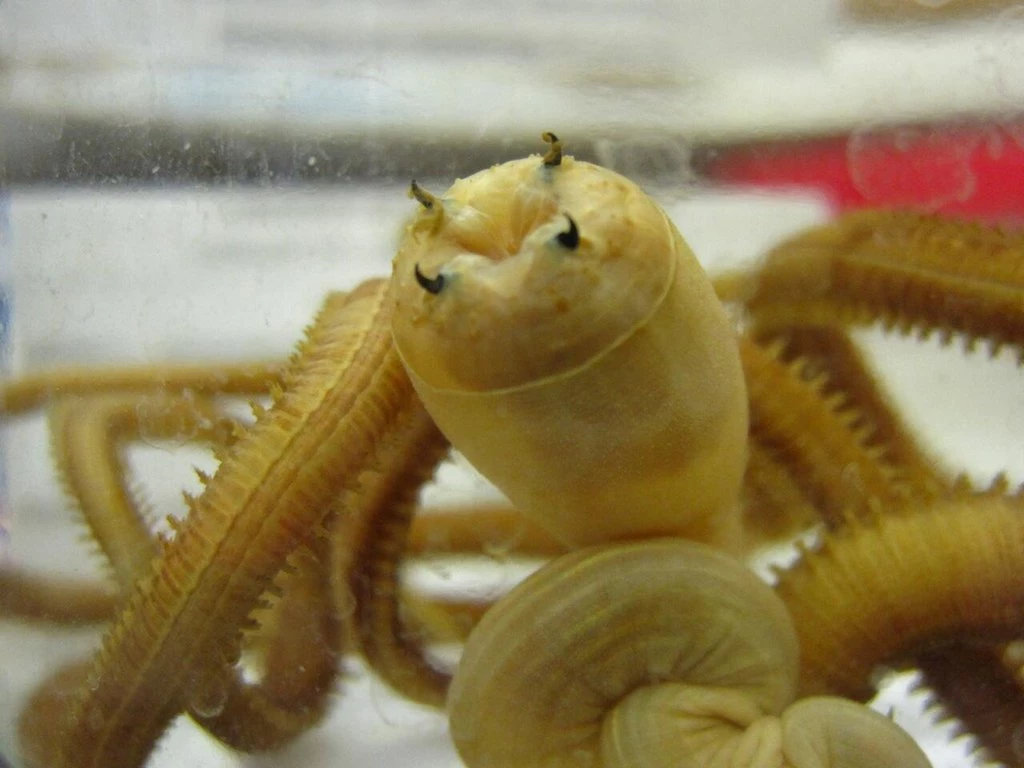 But its not just the big animals, Bloodworms (Glycera spp.) are marine bristle worms related to earthworms and leeches. They have a long feeding tube (proboscis) that can be half the length of their bodies, and can be extended at great speed! Take that Bruce Lee! They are ambush predators, capturing small shrimp-like crustaceans with the sharp jaws at the proboscis tip.