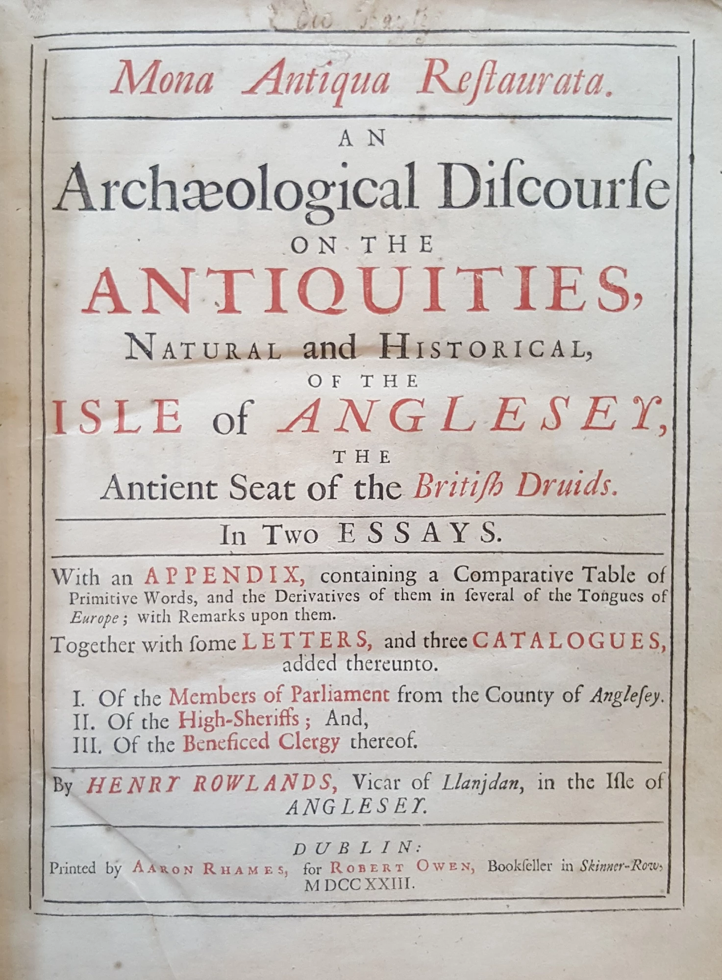 Last week I wrote about some of the rare books in the Museum Library for the Day of Archaeology blog. One of those books was Mona Antiqua Restaurata: an Archaeological Discourse on the Antiquities, Natural and Historical, of the Isle of Anglesey, the Antient Seat of the British Druids.