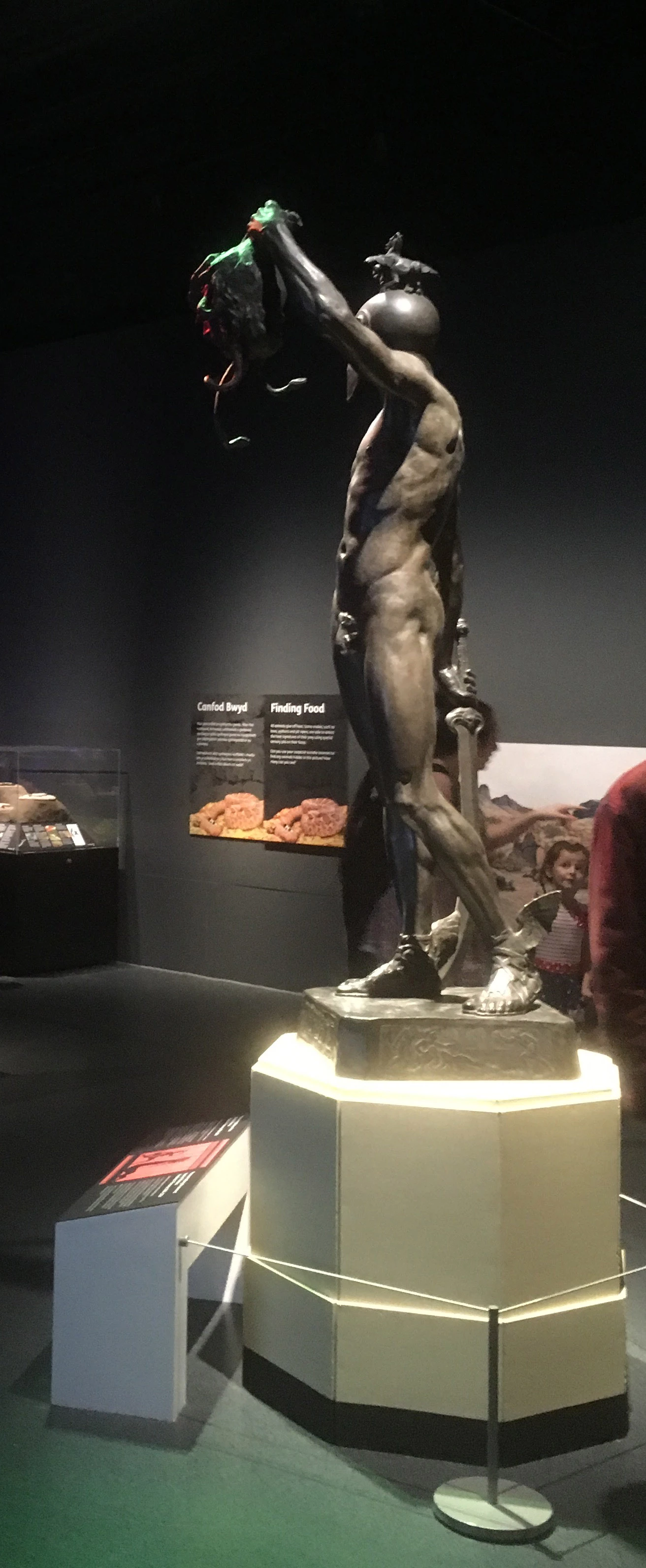 You may also recognise the statue of Perseus that has long been displayed in our main hall. Perseus is enjoying his new surroundings, with Medusa’s snake ridden head looking positively sinister with the new lighting.