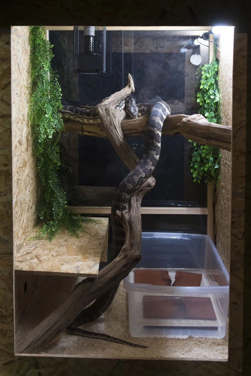 The largest of our live snakes, Prestwick, the Jungle Carpet Python.
