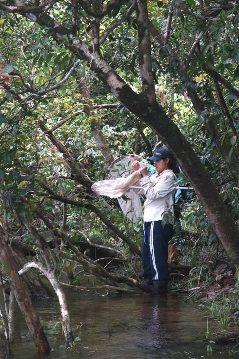 Brazilian PhD student Josenir Camara is working with Dr Adrian Plant, Principal Curator of Entomology at Amgueddfa Cymru, on a three-year project to describe some of the diversity of Diptera (flies) inhabiting the rainforest of Brazil’s Amazon Basin. The two researchers have already made numerous collecting expeditions to remote parts of the Amazon, but now they are both back in Cardiff where Josenir will spend the next six months studying at the Museum. As a part of her research she will describe all the Amazonian species of a group of water-inhabiting flies known as Hemerodromia. She already has more than 50 species that are completely new to science and once these have been formally described, the next task is to construct an evolutionary tree showing how the Amazonian Hemerodromia have diversified in respect to Hemerodromia elsewhere in the world. This is where Amgueddfa Cymru comes in as our extensive collections will provide her with an invaluable resource she can use to compare how Amazonian species differ from others. By careful comparison of ‘characters’ of each species and using sophisticated computing methods, Josenir will construct a ‘phylogenetic tree’ to illustrate the sequence of evolutionary changes that have occurred. By comparing the evolutionary tree with the fossil record, geological and climatic history it is hoped that we start to learn more about the biogeography of the Amazon (biogeography is the study of how species and communities or organisms become distributed both geographically and through geologic time).