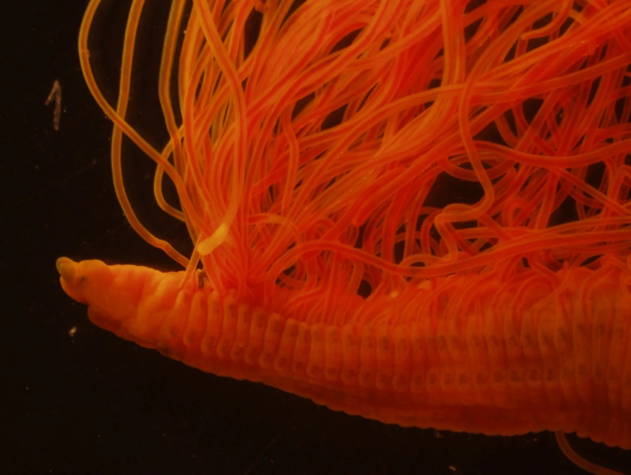 Whilst the beach sampling and the diving both presented challenges the rewards do come when you get to view your catch down the microscope. What on the beach looks like a small orange blob is transformed into an elegant looking worm with a flowing mane of orange hair (a cirratulid – photo 4). If you’re really lucky you get rewarded with a scale worm, resplendent in its glistening armour (photo 5), if you’re unlucky, well it’s just another ragworm…..