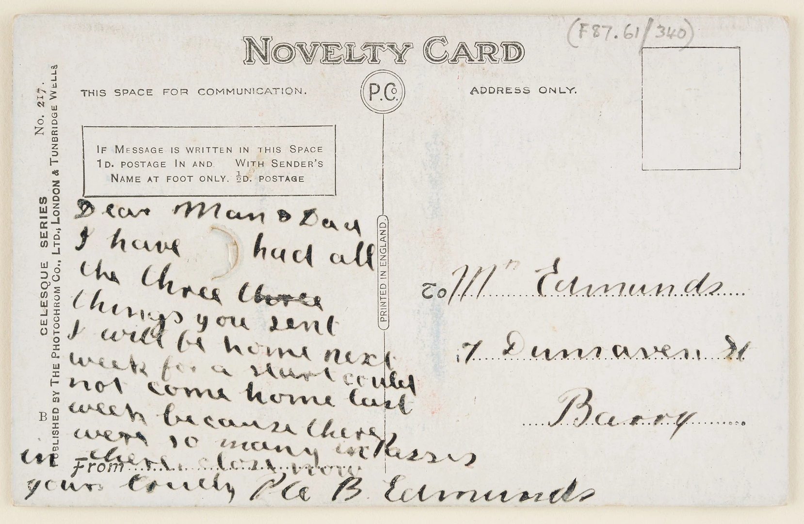 Remember, you can now access the Museum's First World War collections online. We'd love to hear from you if you have further information about Brinley Edmunds, or any other person or family represented in the collections.