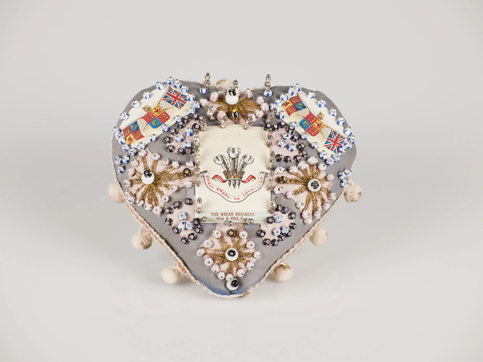 We recently showed the pincushion and postcard to children whose parents are serving in the Armed Forces today. Both objects will be displayed in the redeveloped galleries here at St Fagans, alongside contemporary responses generated through partnership work with the Armed Forces Community Covenant Grant Scheme. When asked to consider why Brinley may have made this pincushion for his mother, one young girl suggested it was his way of saying ‘I’m alive, don’t worry.’