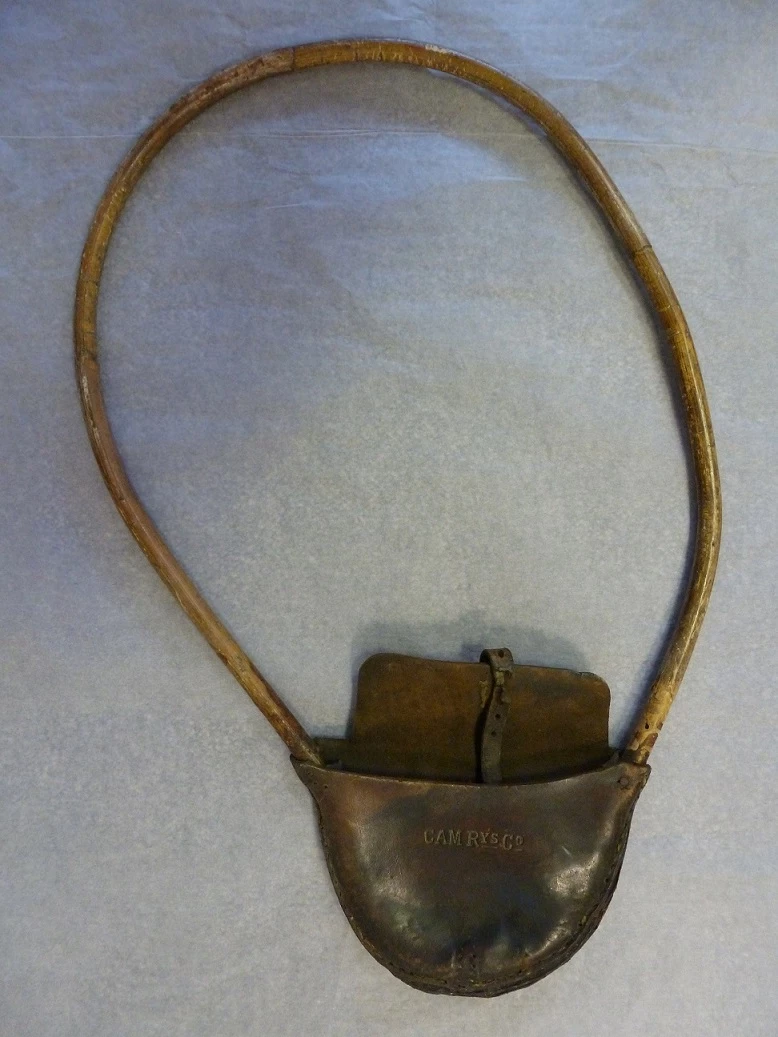 A number of interesting objects have entered the industry & transport collections this month. Recently the museum purchased this Cambrian Railways Co. leather pouch for a single line tablet. The pouch would contain a tablet controlling the movement of trains. The driver must have possession of the tablet to proceed along the single line track. The Cambrian Railways were absorbed by the Great Western Railway on 1 January 1922, and this is an early example with a cane loop.
