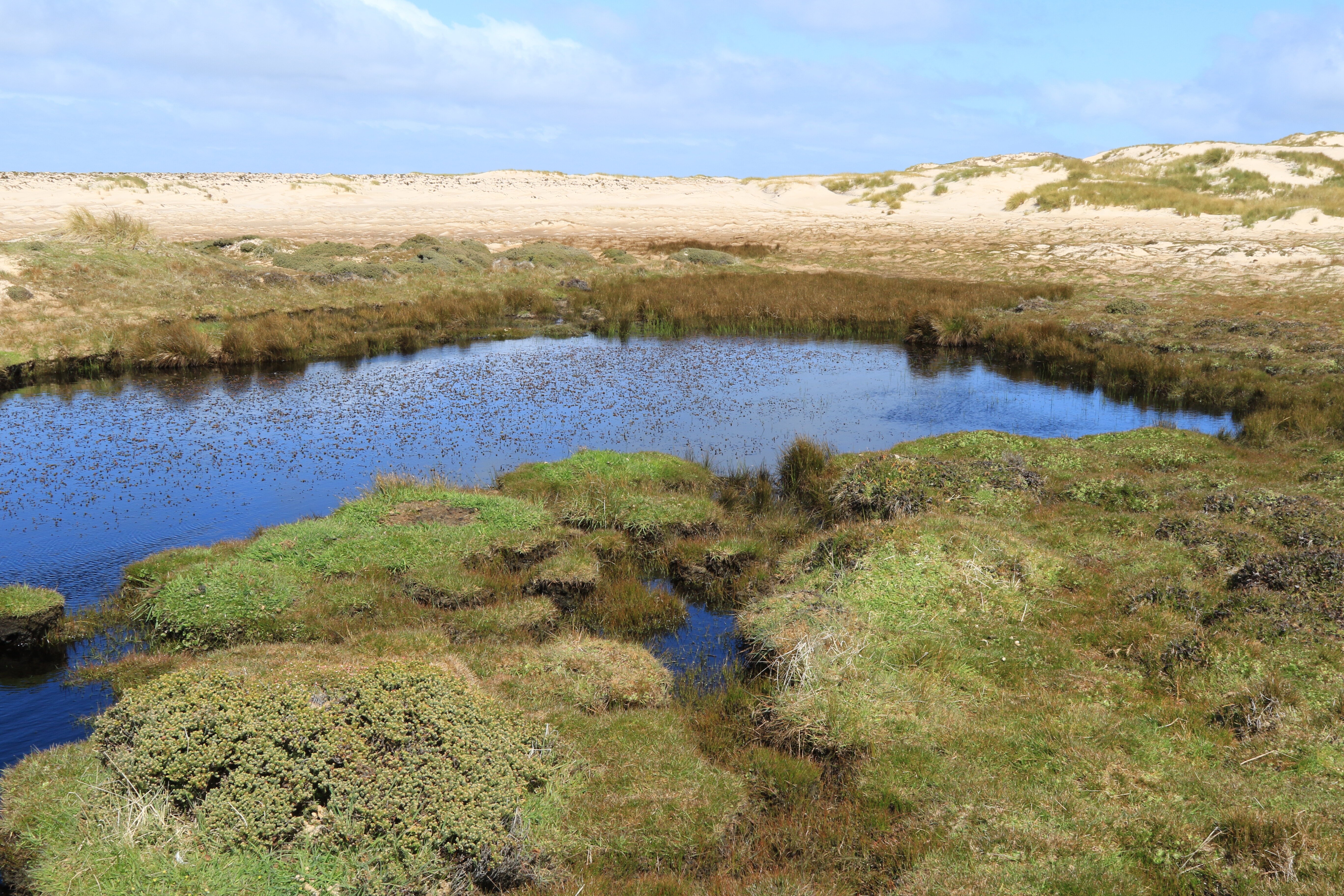 I stayed on Pebble Island for three days and had opportunities to explore both the western and eastern parts of the island. I collected from sites impacted by agriculture within the vicinity of farmland but also from remote sites away from human activities. The sites were varied and included ponds near the seashore that would receive sea spray, ponds in sand dunes and others which were certainly frequented by upland geese and other birds including penguins and therefore rich in nutrients.