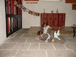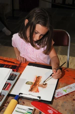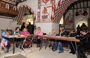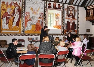 The painting activity proved extremely popular, with some children staying for over an hour while they created designs and learnt how these would have been transferred onto the walls of the church. Meanwhile for the adults there was the chance to hear museum conservator and pigment expert Penny Hill explain how medieval craftsmen had produced the original paintings at St Teilo's, and the lengths to which the museum has gone to ensure our reproductions are faithful to their work.