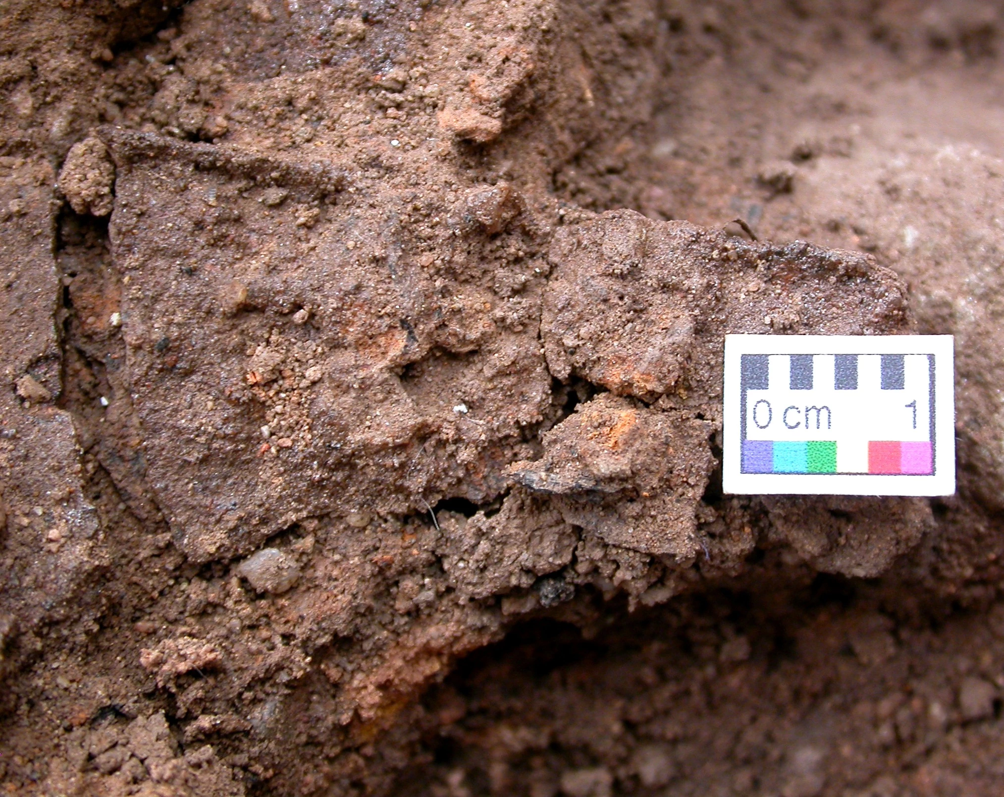 As a last aside, I thought I should provide a brief explanation for the condition of the buried lorica segmentata. Readers may have noticed how exposed finds lack the thick crusts of rust and voluminous corrosion products typical of a lot of archaeological iron objects: this is most likely because the thin iron plates corroded extremely quickly, with the iron leeching into the soil. Whilst this does mean that I will not have to spend hours removing powdery iron corrosion in order to reach a more certain surface on the iron, it also indicates that the remaining ‘object’ is more of a pseudomorph lying on top of the soil: this is why the ‘plate’ most often does not respond to the pull of a magnet. This level of deterioration will have implications for the eventual conservation treatment of the armour, as I may be unable to extract the iron plates (which have very little physical integrity), from the soil.