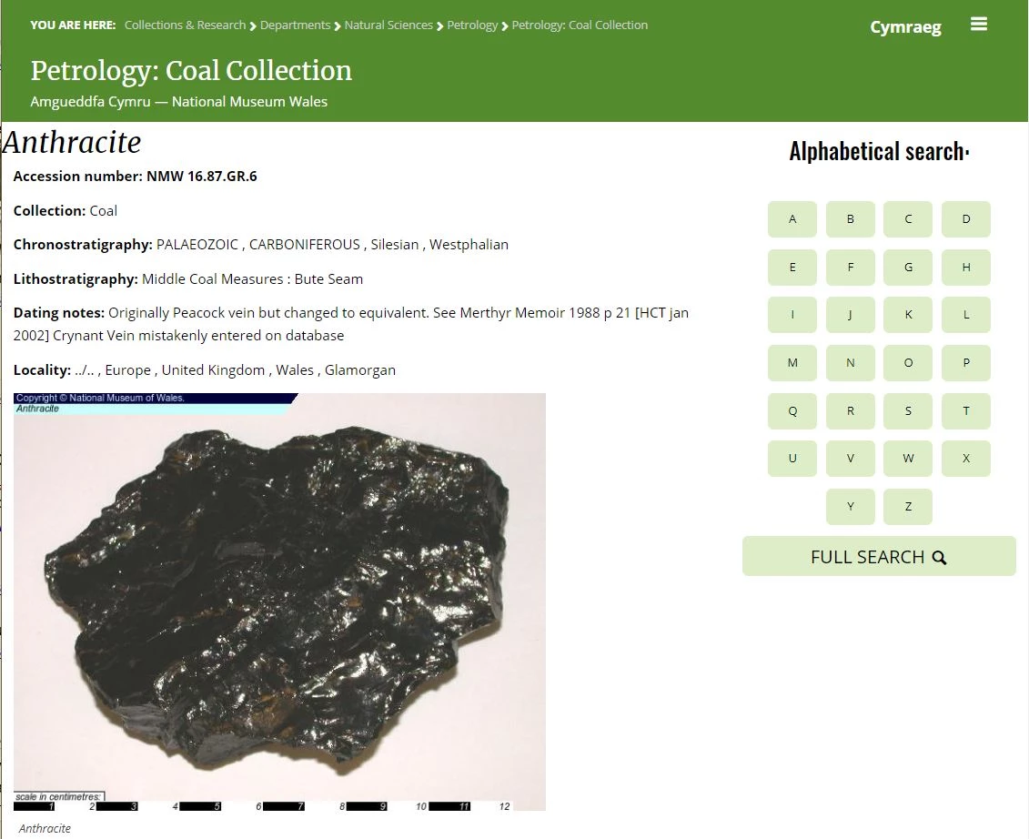 A catalogue of the coal specimens at Amgueddfa Cymru-National Museum Wales.