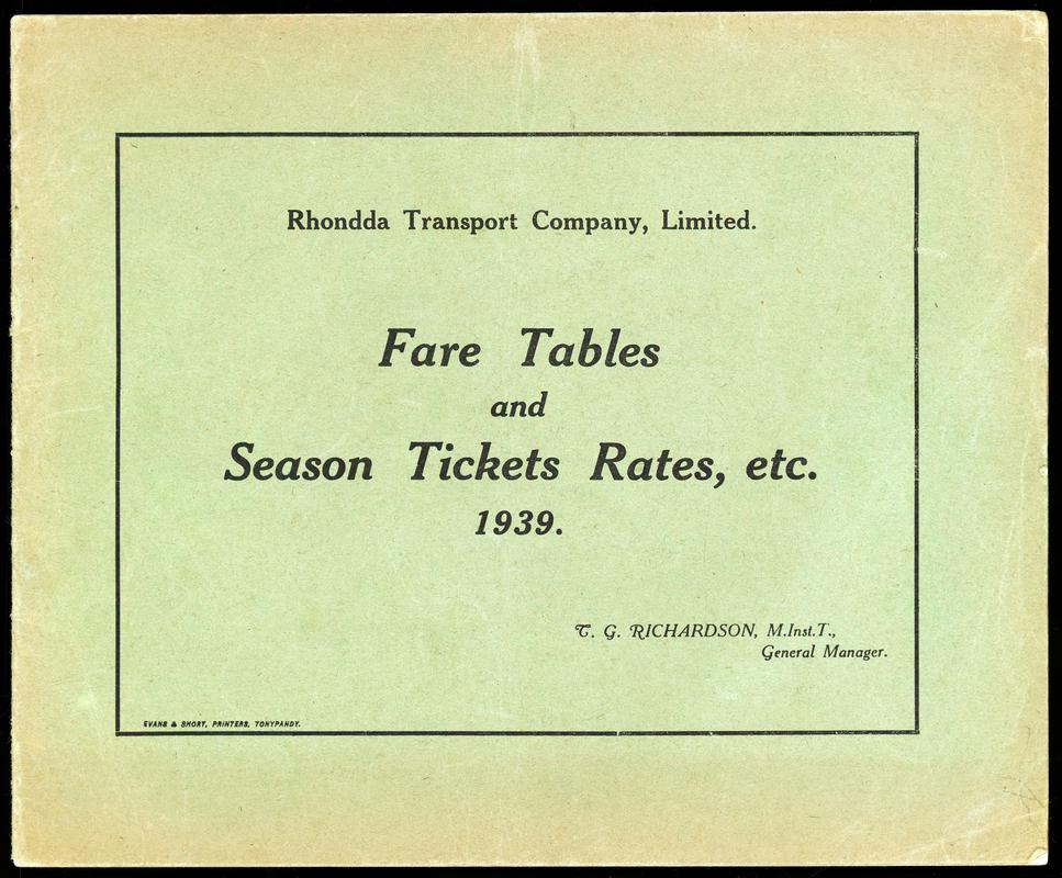 Rhondda Transport Co. Ltd., fare tables (booklet)