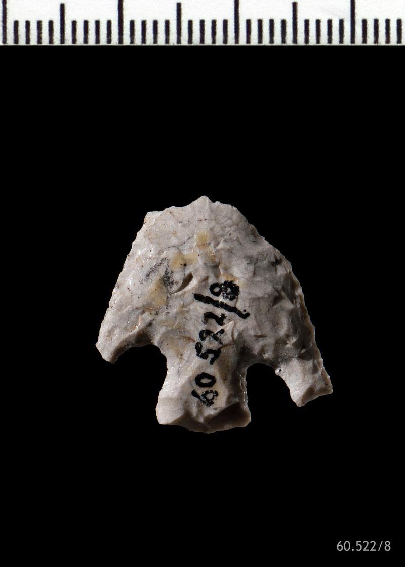 26 cores, 1 spearhead, 8 scrapers, 62 flakes, 2 knives, 2 loaf-shaped arrowheads, 7 retouched pieces, 10 blades, 1 possible oblique arrowhead, 2 fabricators, 10 points