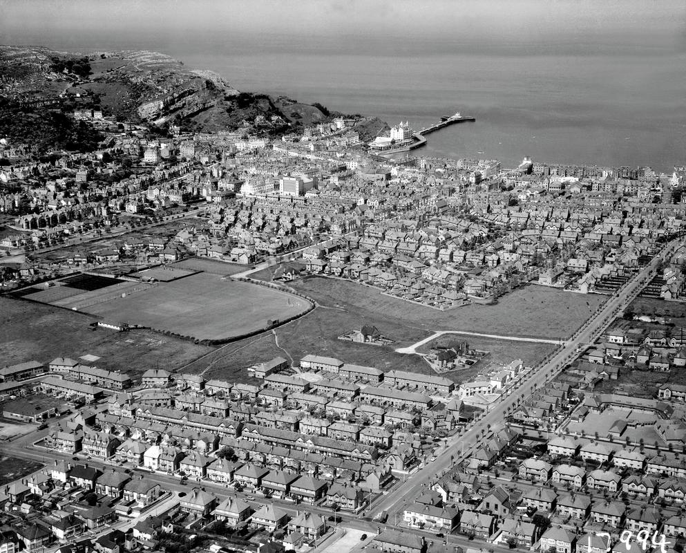 Afonwen. Tractor hauling boat on the foreshore. Railway station seen in the background.