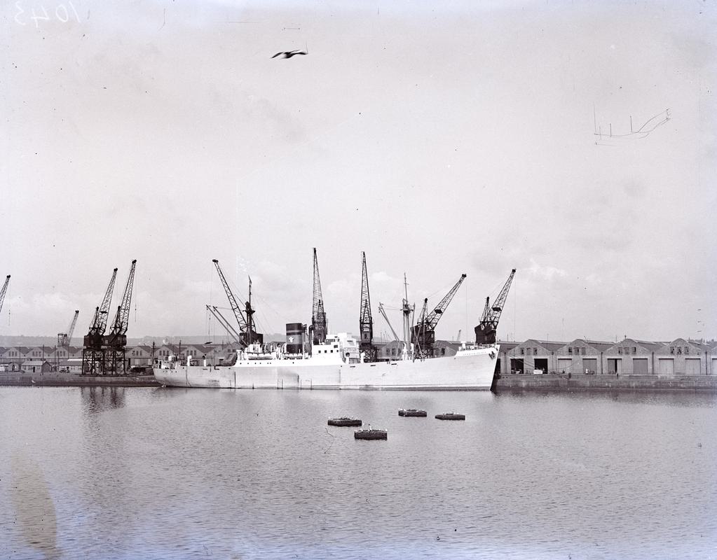 ¾ Starboard bow view of S.S. WELSH PRINCE entering Cardiff Docks.