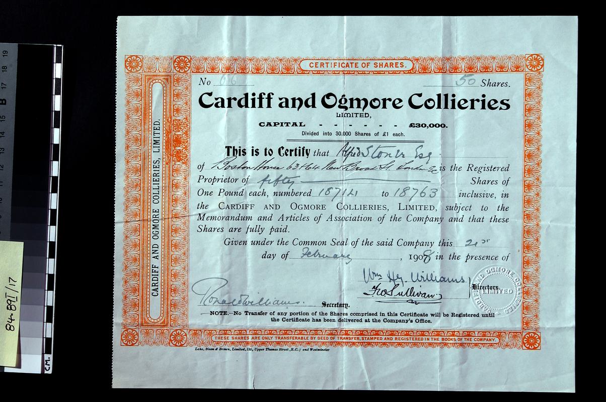 Mynyddislwyn Collieries Limited, share certificate