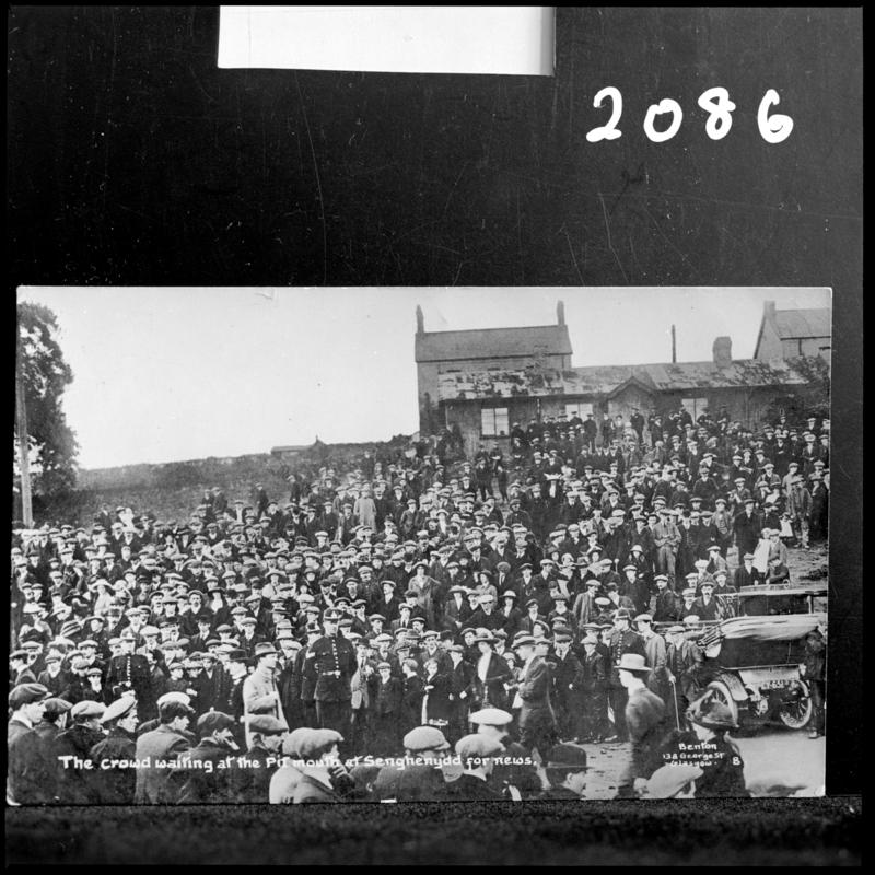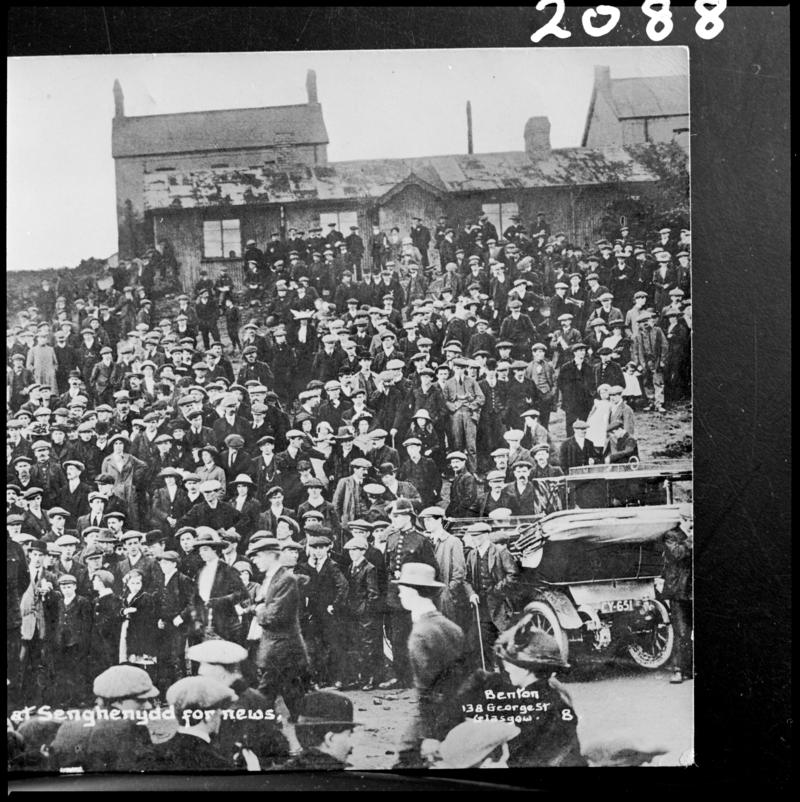 Digital scan of original postcard, with inscription in Welsh on reverse relating to the Universal Colliery disaster, Senghenydd. (14/10/1913)