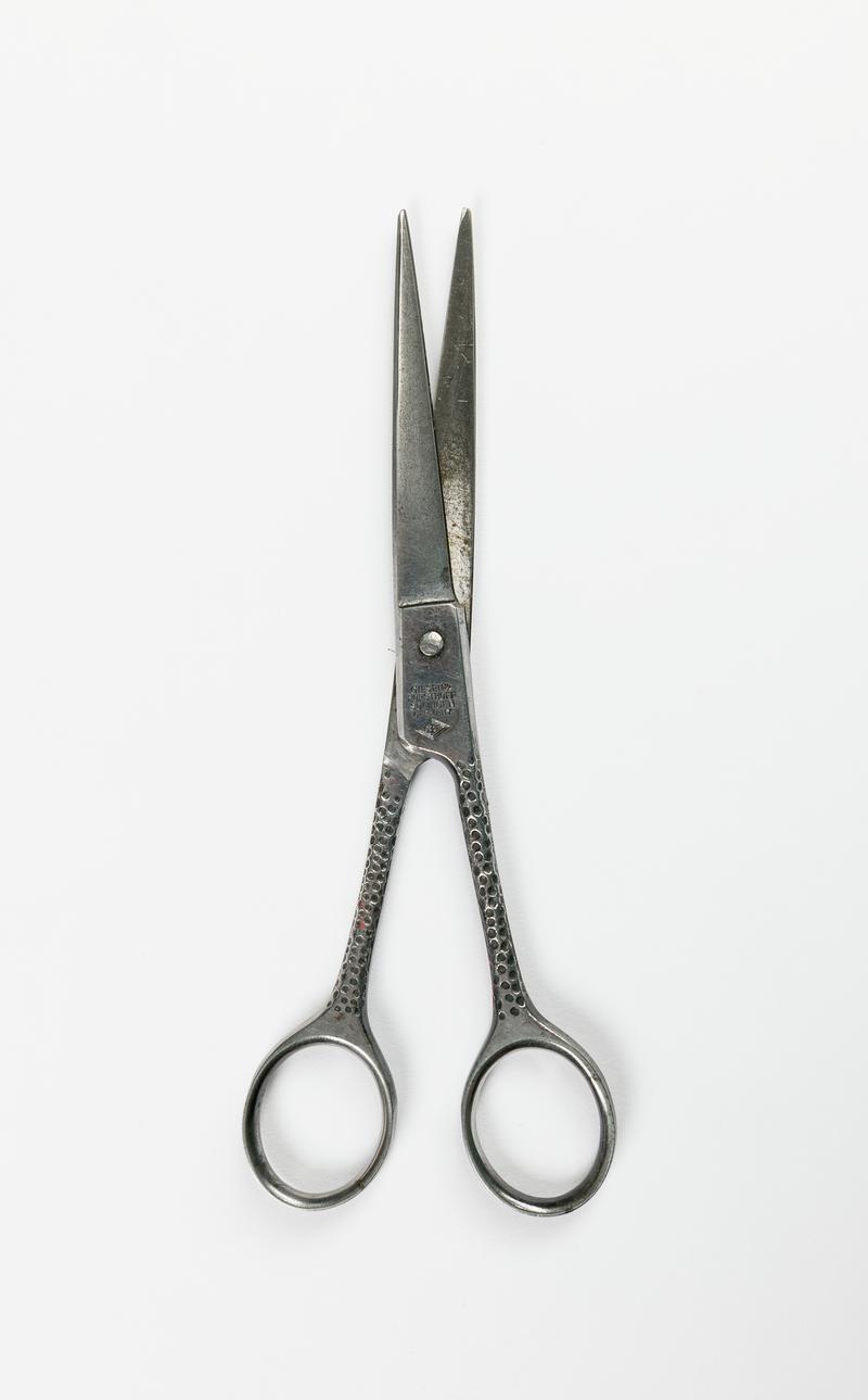Cream plastic flat-top comb with hinged handle for easier handling whilst cutting hair. Especially designed to create the "flat-top" haircut. From W. T. Bates, barber shop, 3 Bridgend Road, Llanharan.