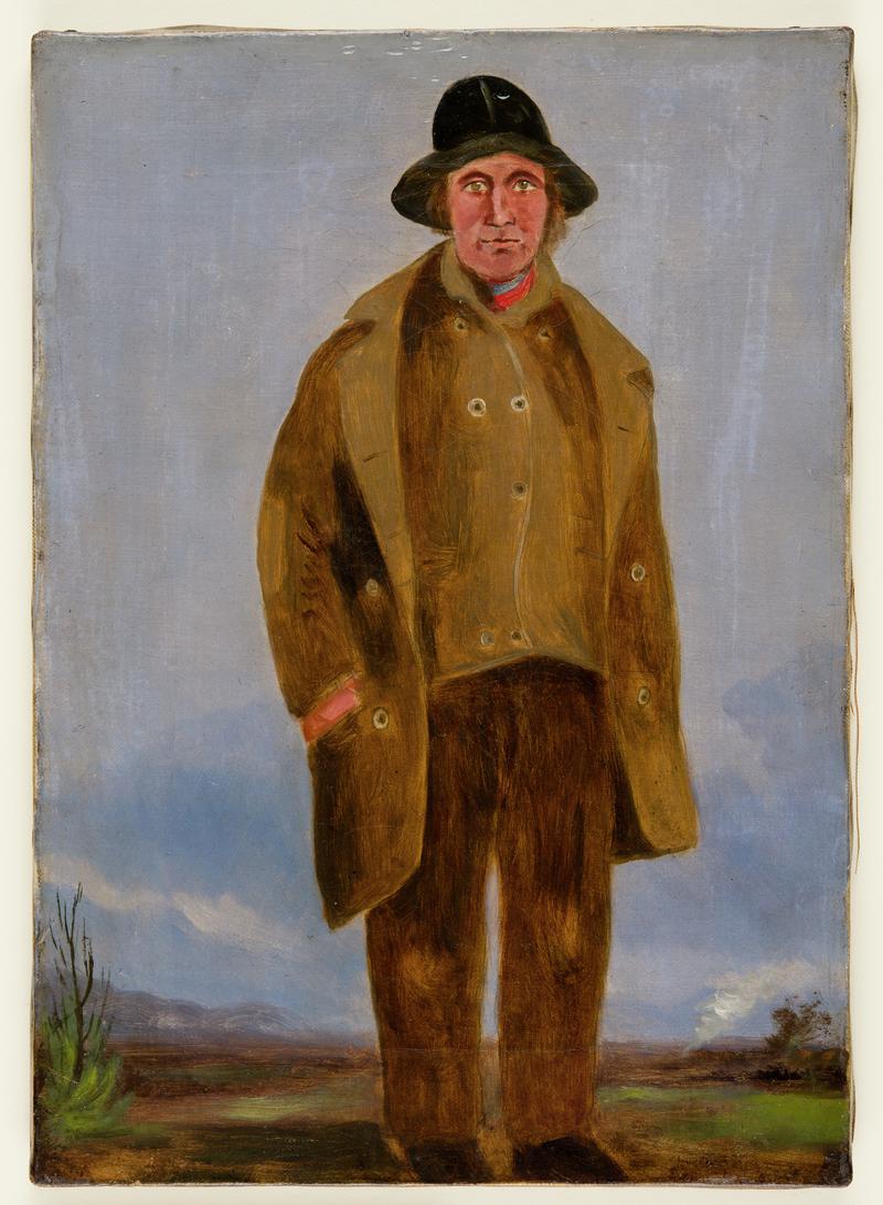 This is one of a unique group of portraits of workers commissioned by the industrialist Francis Crawshay in the 1830s. The portraits – all male – include both skilled and unskilled workers from the ironworks at Hirwaun, and the tinplate works at Treforest. It was unusual for industrial baron to commission individual portraits of their workers, but Francis Crawshay was not your typical industrialist. He built his own cottage instead of living in the grand family home, and was indifferent to the Crawshay way of working: his father apparently complained of him ‘spending my money as a devil of a pace’. The only Welsh speaker of the family, he was apparently more likely to be found chatting with the workers than ruling over them. The workers fondly called him ‘Mr Frank’. In the early 1830s, Francis was put in charge of Hirwaun Ironworks, which his father had acquired in 1819, and a new tinplate works at Treforest, near Pontypridd. The portraits of his employees were commissioned around 1835, and are attributed to W J Chapman, a travelling artist. The group passed by descent in the Crawshay family, and may originally have been ever larger. One other figure is recorded, but now seems to be lost.