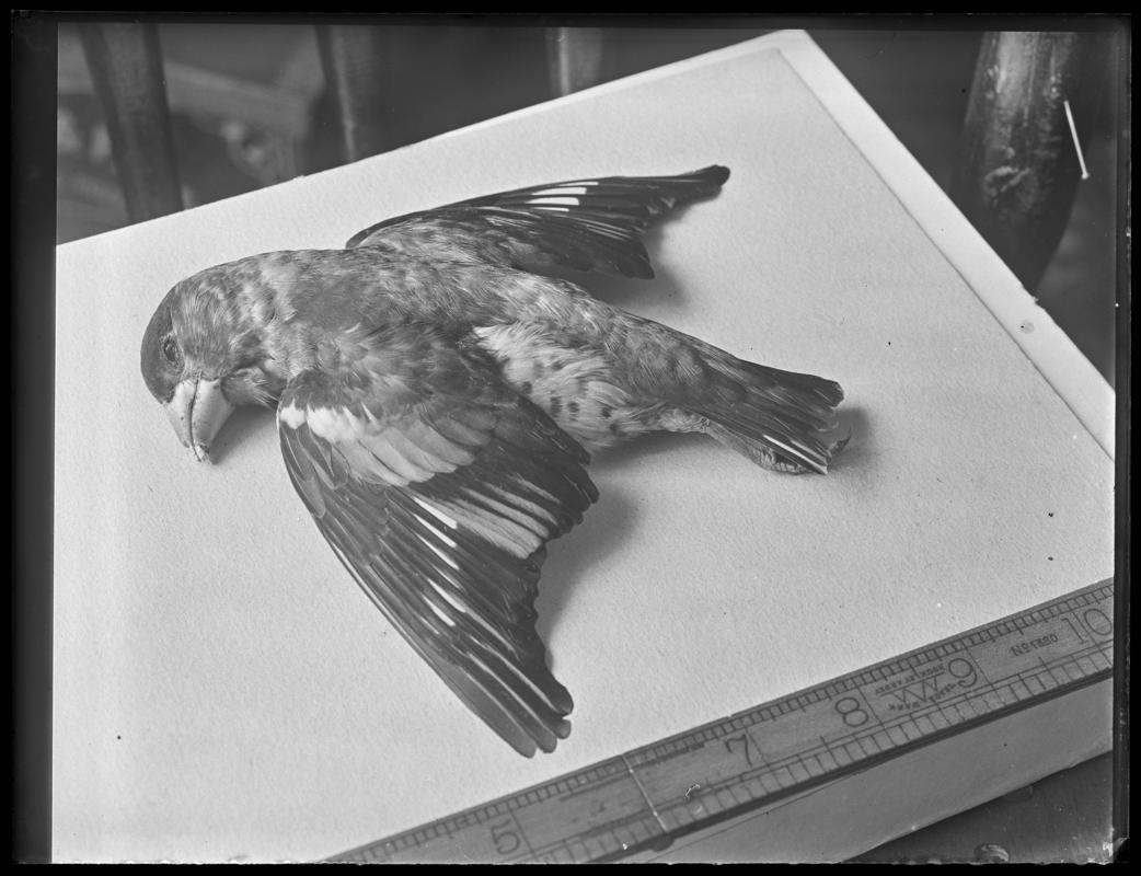 A Wood Warbler (Phylloscopus sibilatrix) at nest, Aberedw, Radnorshire. Photographed 21 June, 1953.