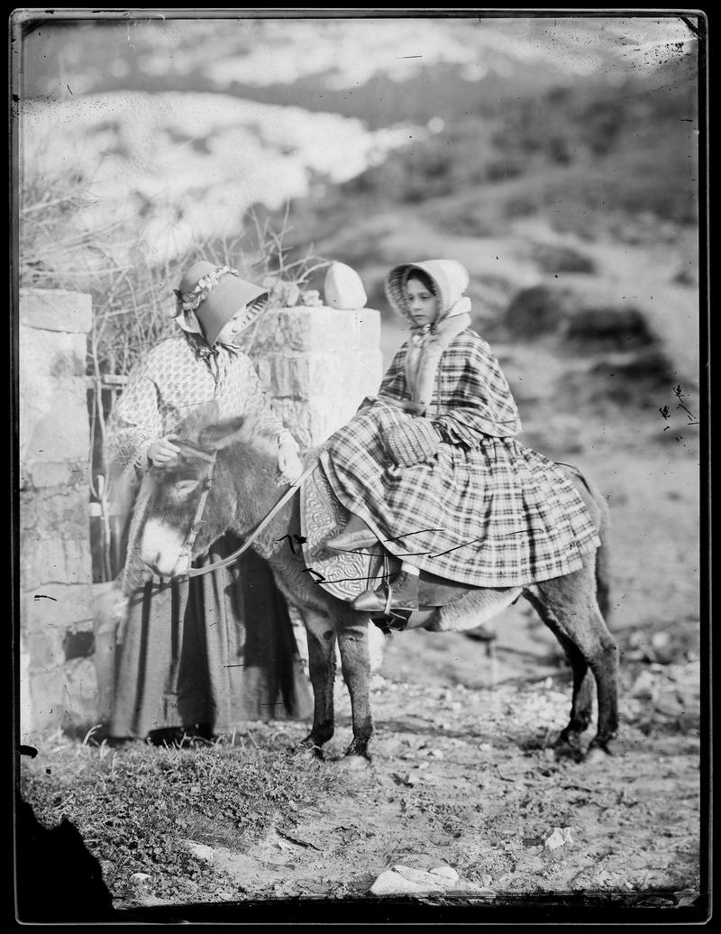 Collodion glass negative showing a lady (possibly Mrs Franklen) next to group of pot plants.