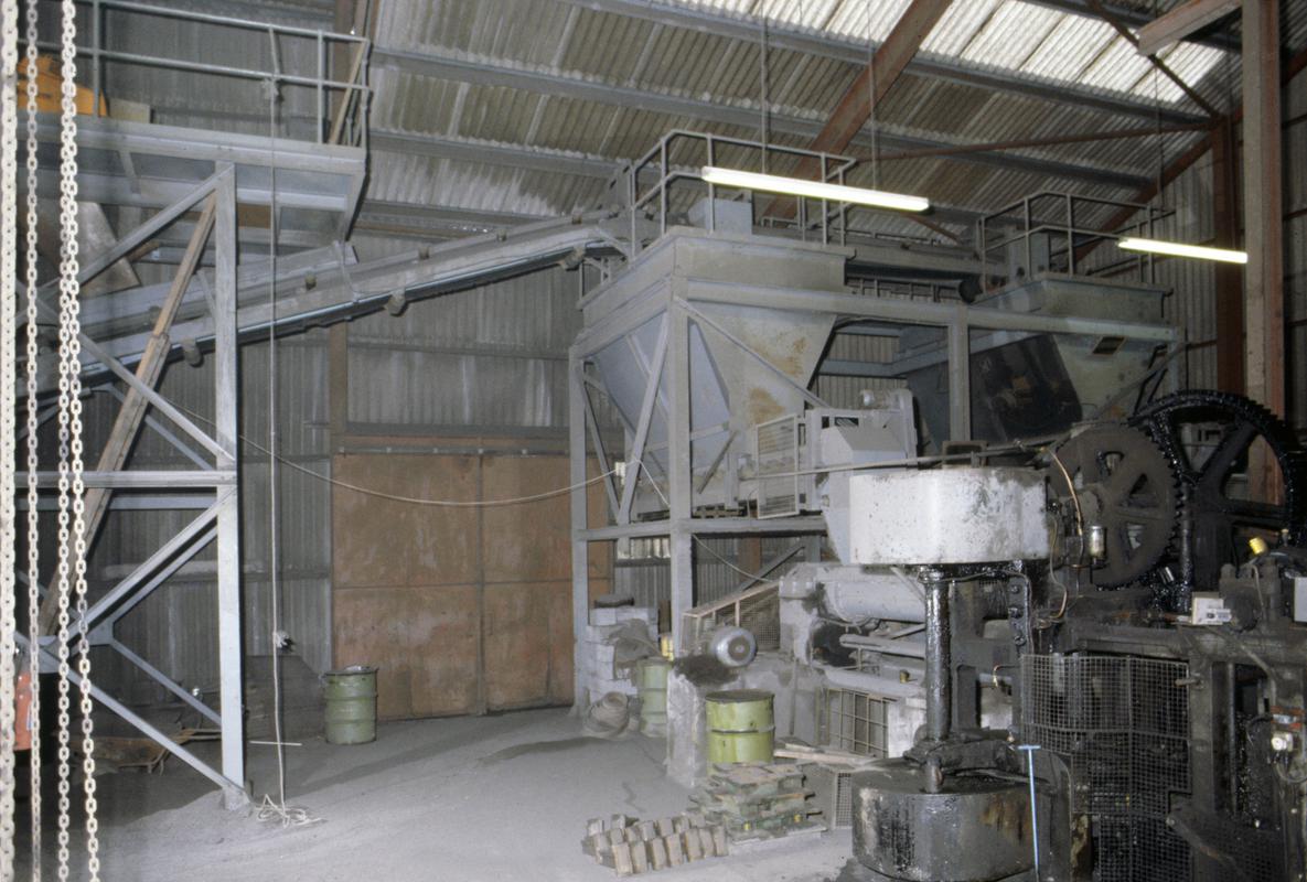 Wheelbarrow wheel from a silica brickworks at Kidwelly. Metal wheel with eight spokes, part of axle missing through centre with hexagonal headed bolt passing through one side.