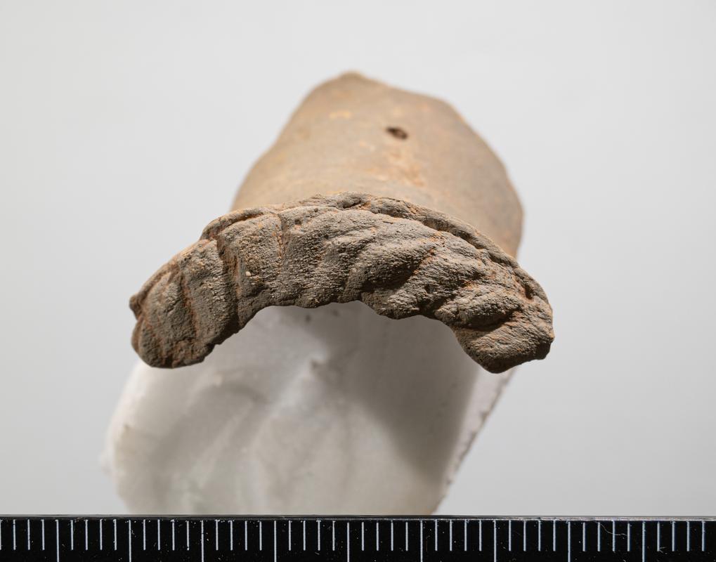x2 white-slipped red ware sherds from the same large flagon; x3 red ware sherds from the same ring-necked flagon; x1 red ware flanged bowl sherd; x1 red ware imitation Dr37 bowl sherd; x6 red ware jar sherds; x4 terra nigra imitation Dr31 bowl sherds (from at least two vessels); x7 grey ware jar sherds; x1 grey ware flanged bowl sherd; x1 grey ware bowl sherd; x2 red ware pot lid sherds (from the same lid); x3 terra nigra wide-mouthed bowl sherds from the same vessel.