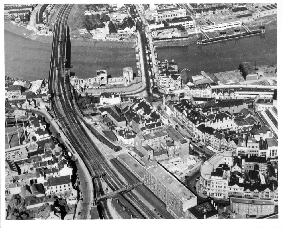 Starboard view of the HARRIER on the mud at Davies Brothers London Wharf, Newport. Mounted on card with photographers stamp.