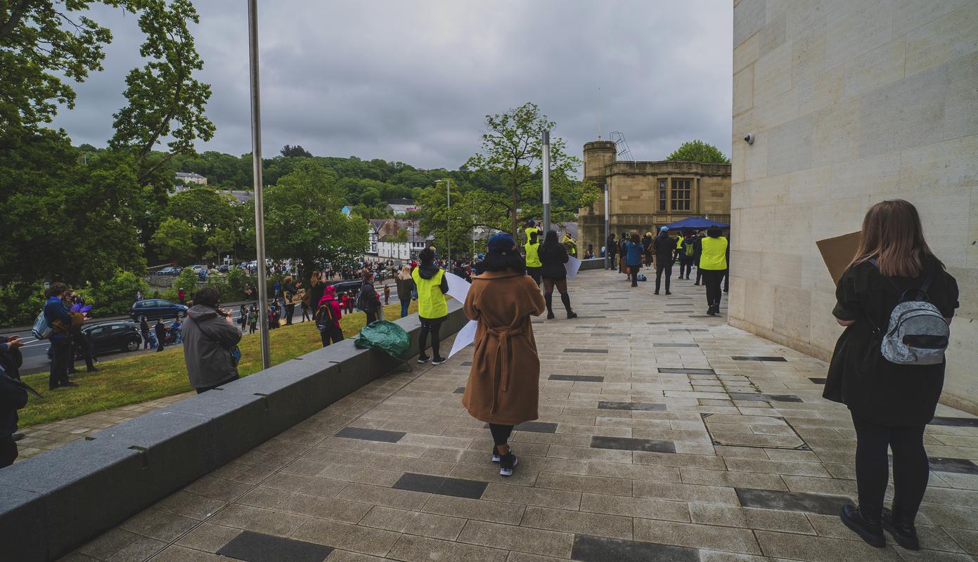 Protester holding a placard at the 'cost of living' demonstration held in Cardiff city centre on 1 October 2022. The demonstration was organised by the Cardiff Trades Council, supported by the Enough is Enough campaign.
