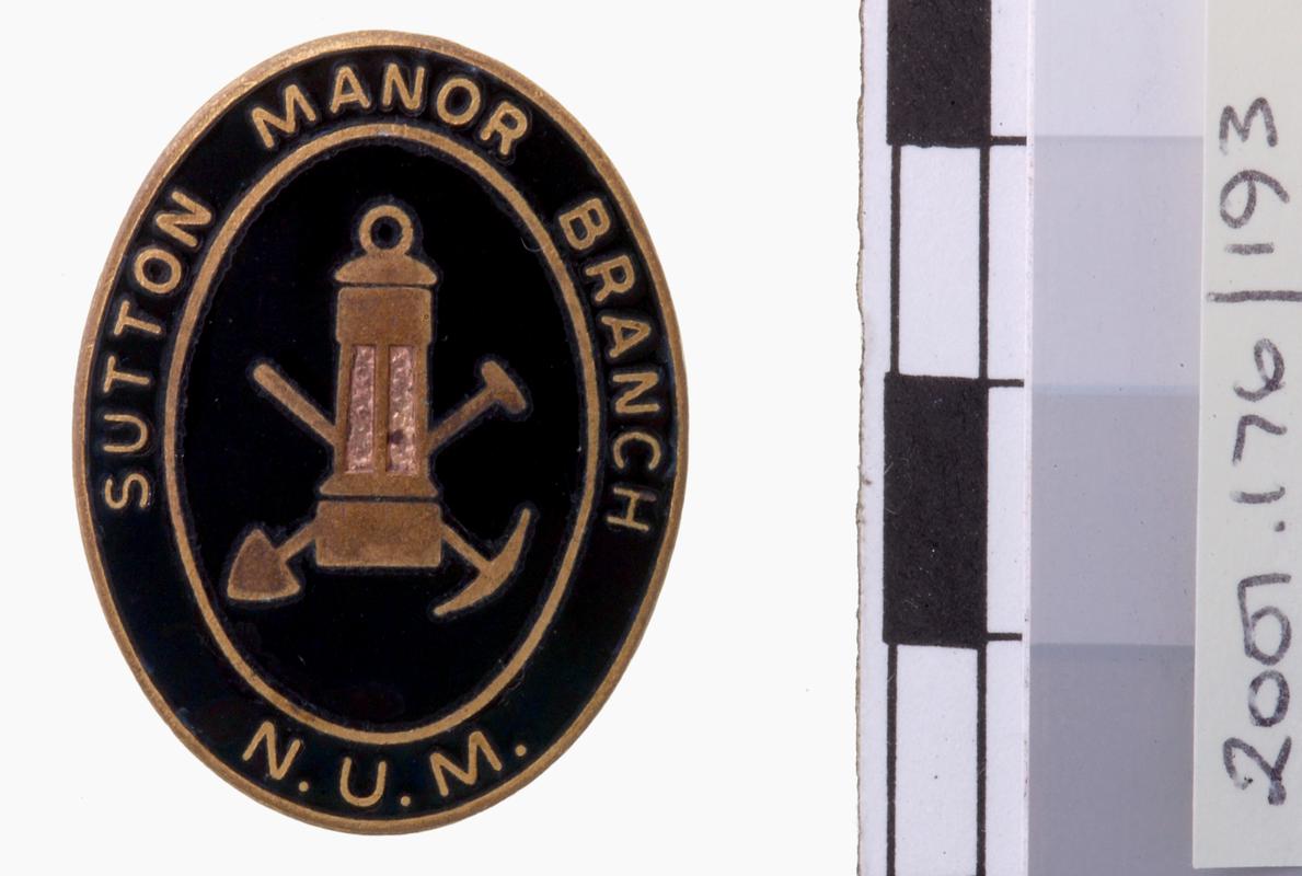 Metal lapel badge depicting a police van set in blue and black enamel with inscription below set set in black enamel.