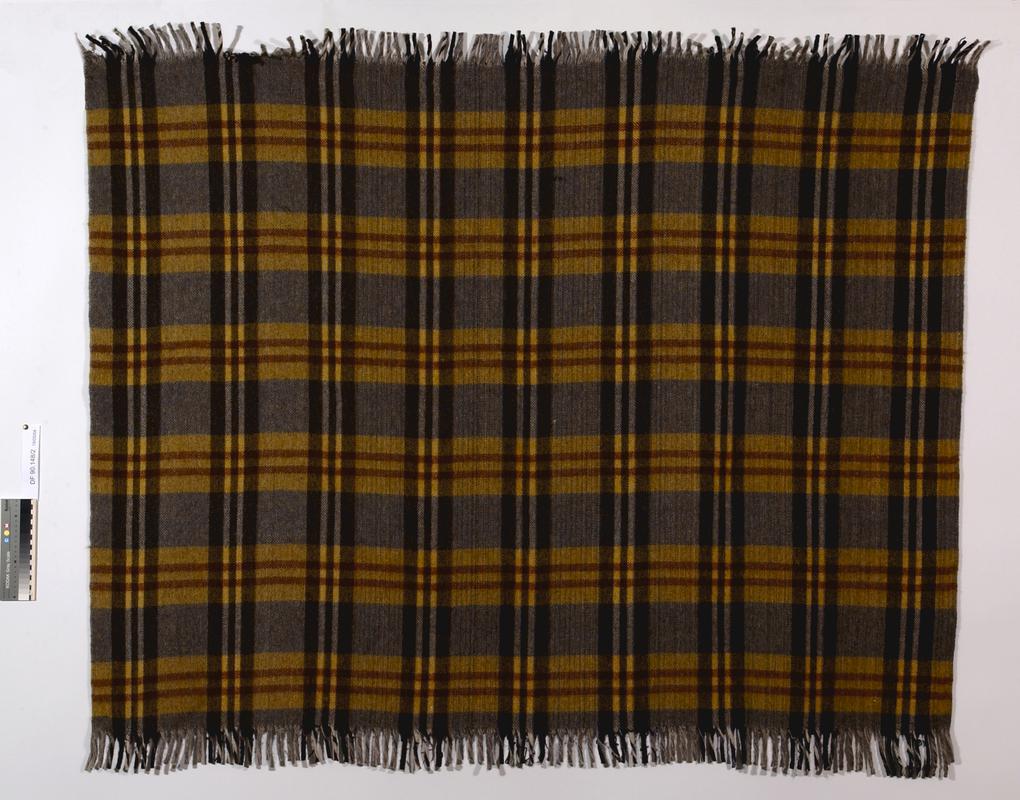 Traditional tapestry pattern, 'Celtic Mist' travel rug. Rust and brown with fringe at either end.