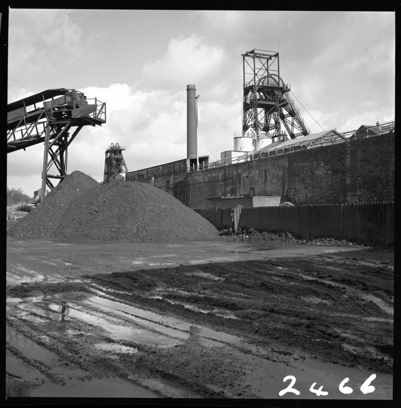 Black and white film negative showing a surface view of Merthyr Vale Colliery.