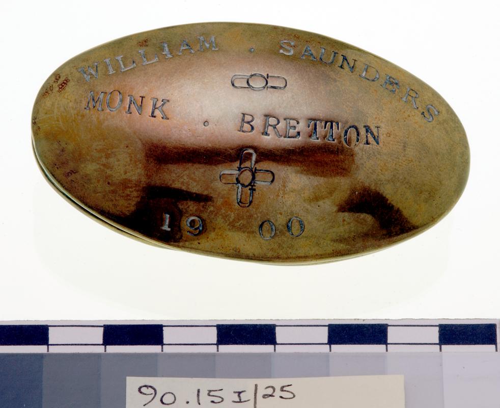 Wooden case with leather carrying handle. Firing key separate in lid of case.