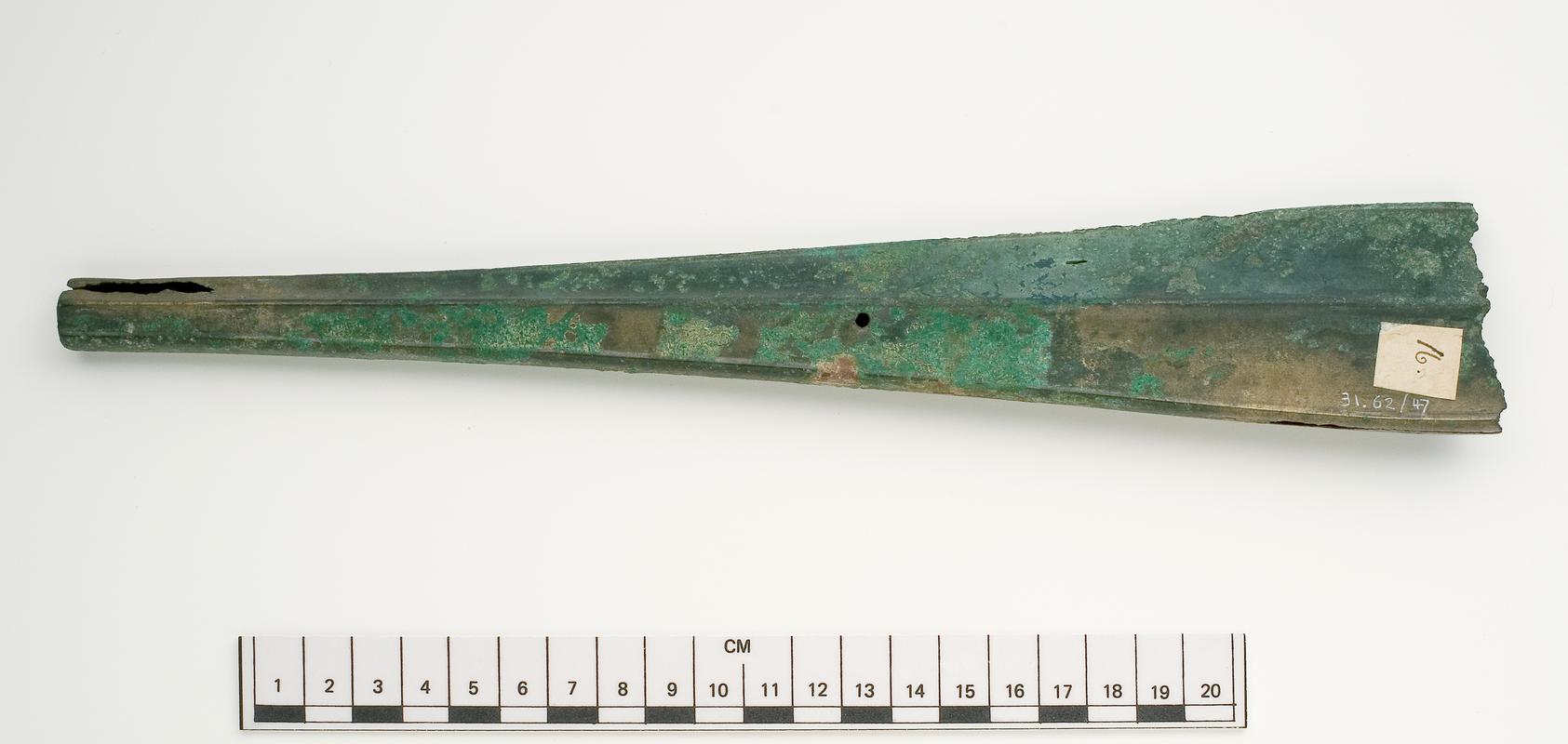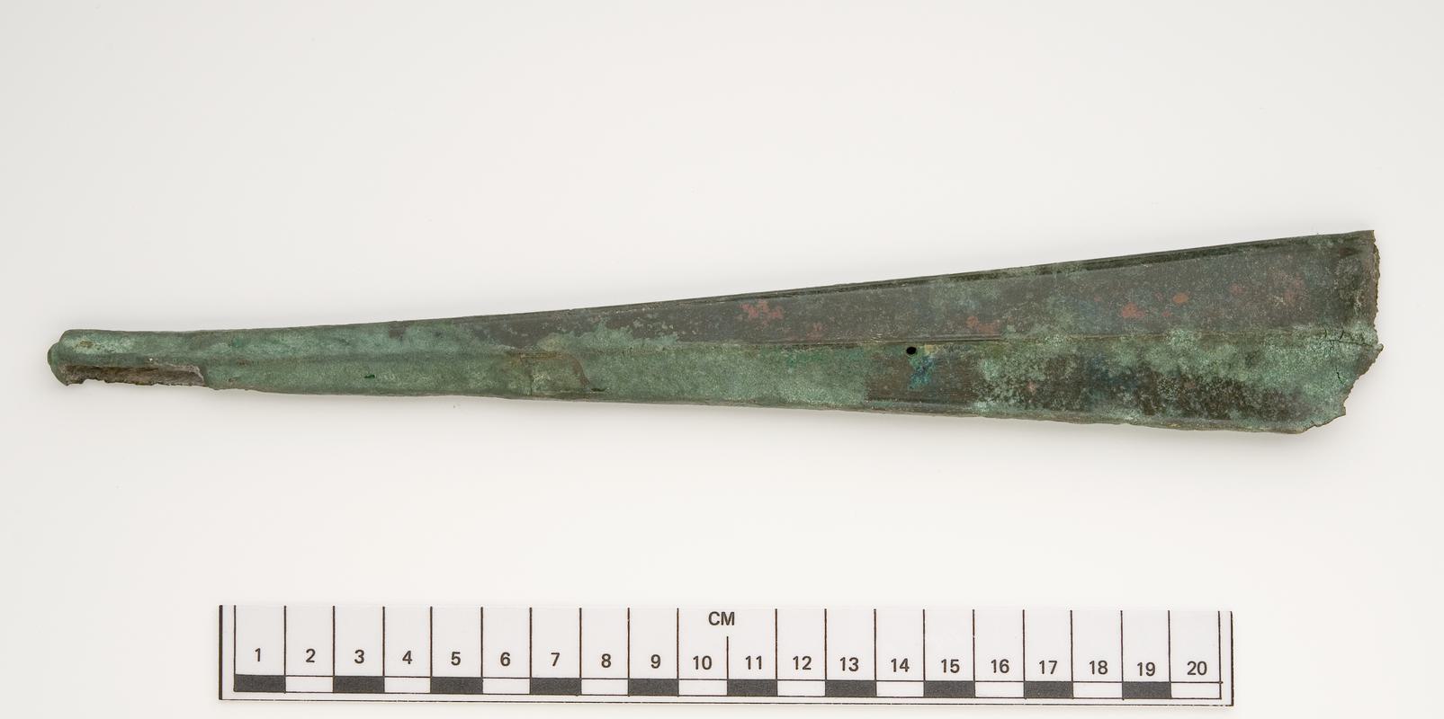 South Wales Type axe, looped, with projecting cornice at the mouth of the socket and three parallel ribs on each face. Finished with no casting flashes or runner stubs.