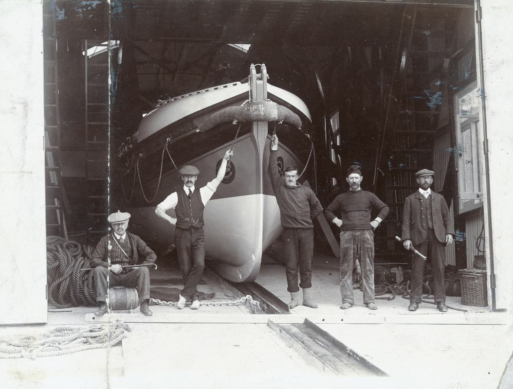 Five pleasure boats operating off beach, Aberystwyth in the 1930s.