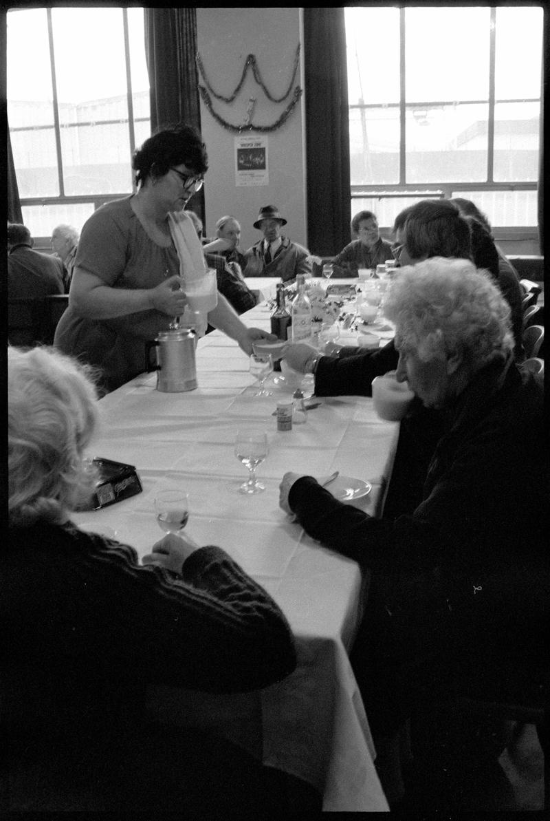 Photograph showing dancers on stage, three rows of girls in white fairy costumes, scenery is of a wood. Caption from exhibtion "New Marionettes, Cwmaman Hall, 1954. (Paul Rosser)".