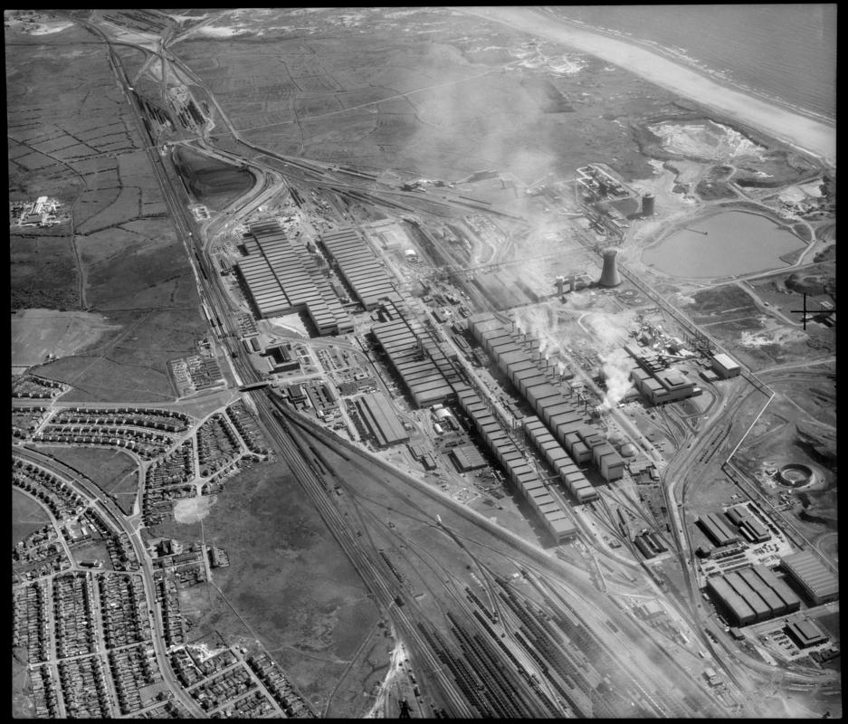 Aerial view of cooling tower at Abbey Works, Port Talbot. (Holst Morgan)
