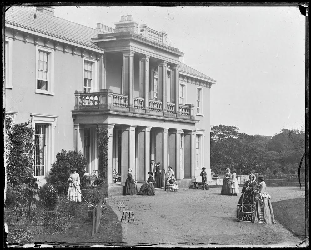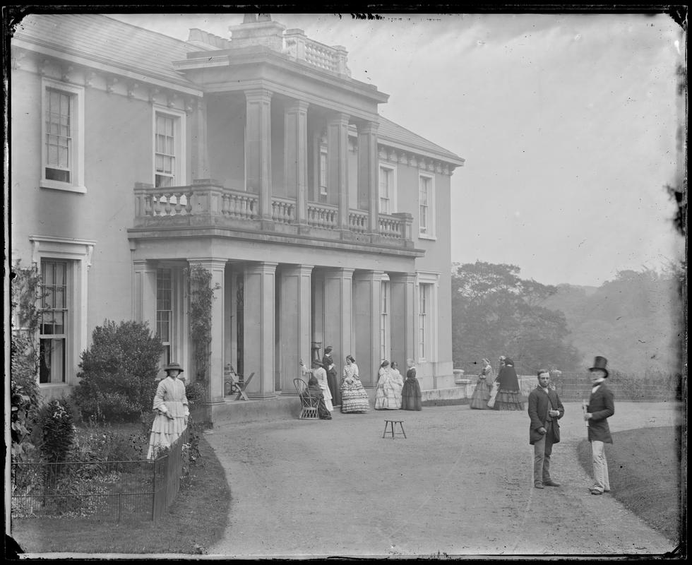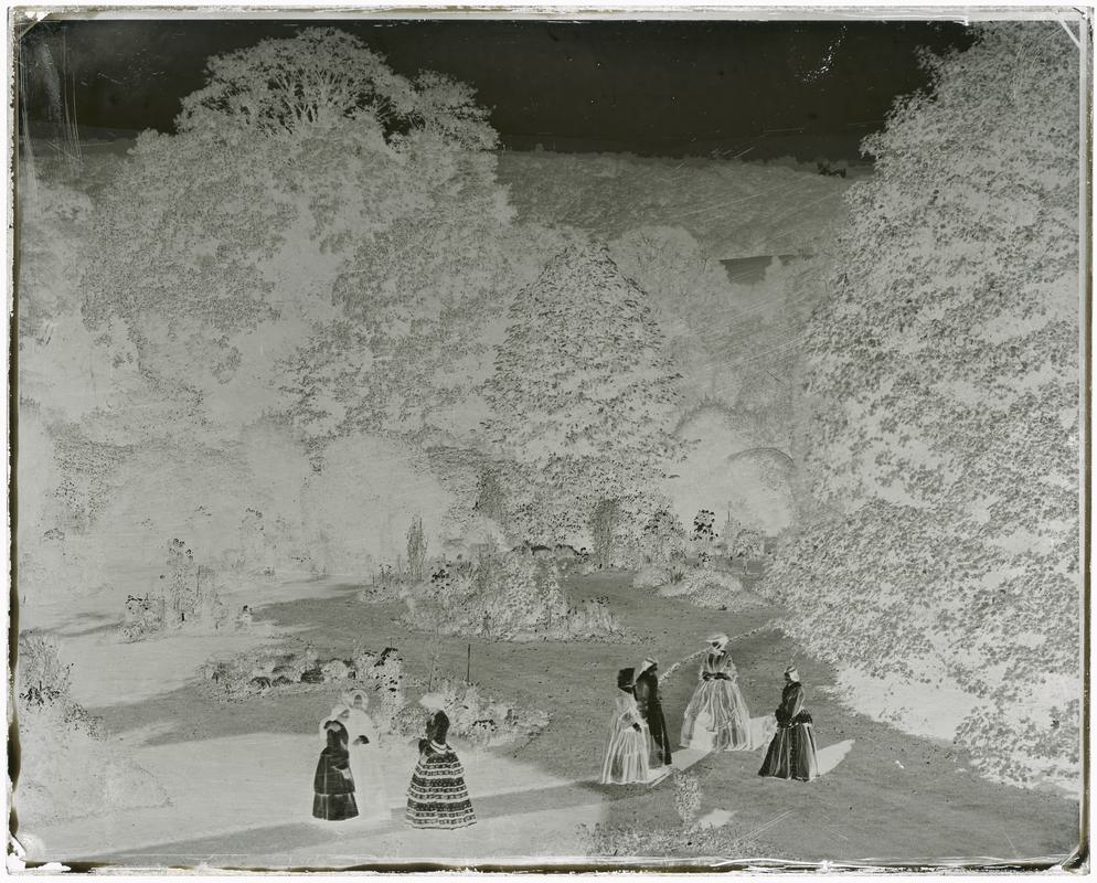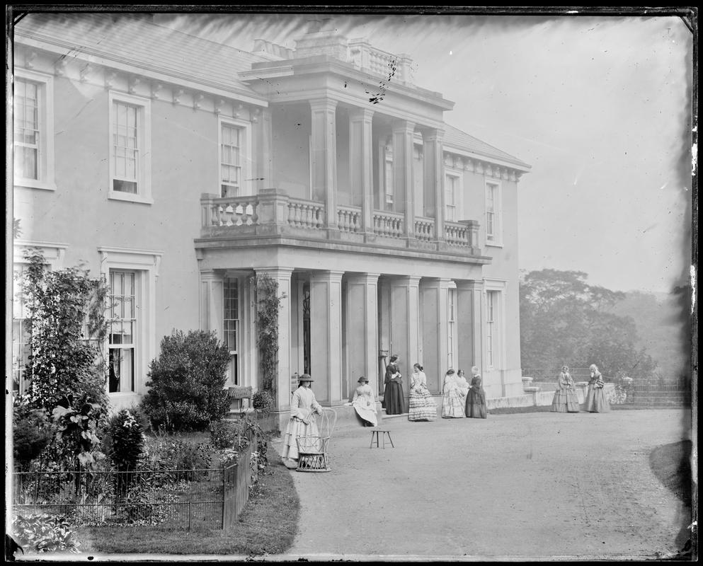 Collodion glass negative. View across the fields towards the front of Penllergare House.