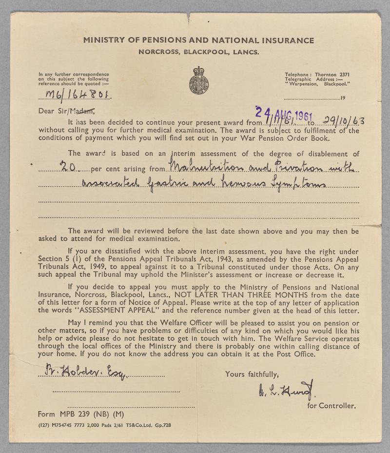 Part of a collection of items belonging to Ronald Holder. Ronald Holder was born in Abercynon in 1914. During the Second World War he joined the Royal Signals. Early in the war he was captured in Java, and spent three and a half years as a Prisoner of War in the hands of the Japanese. He was liberated by the Gurkha’s and eventually came back to Wales via the troop ship M.V. Teglelberg.